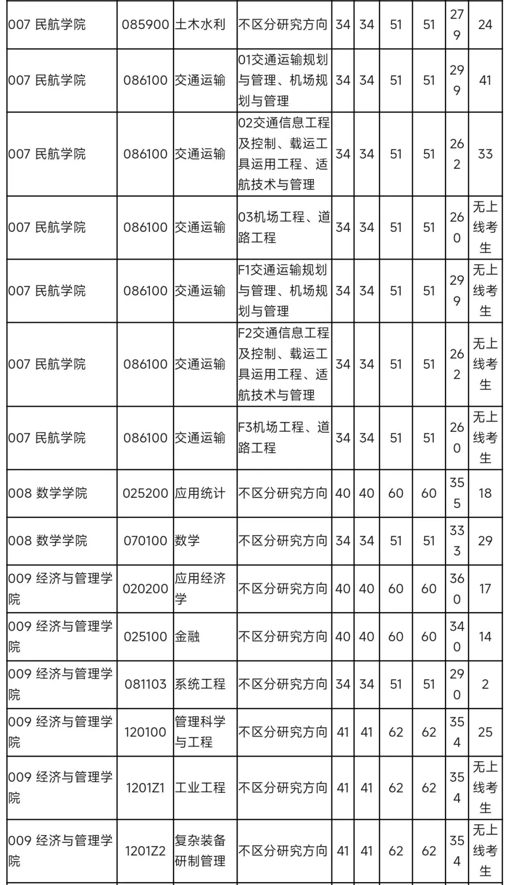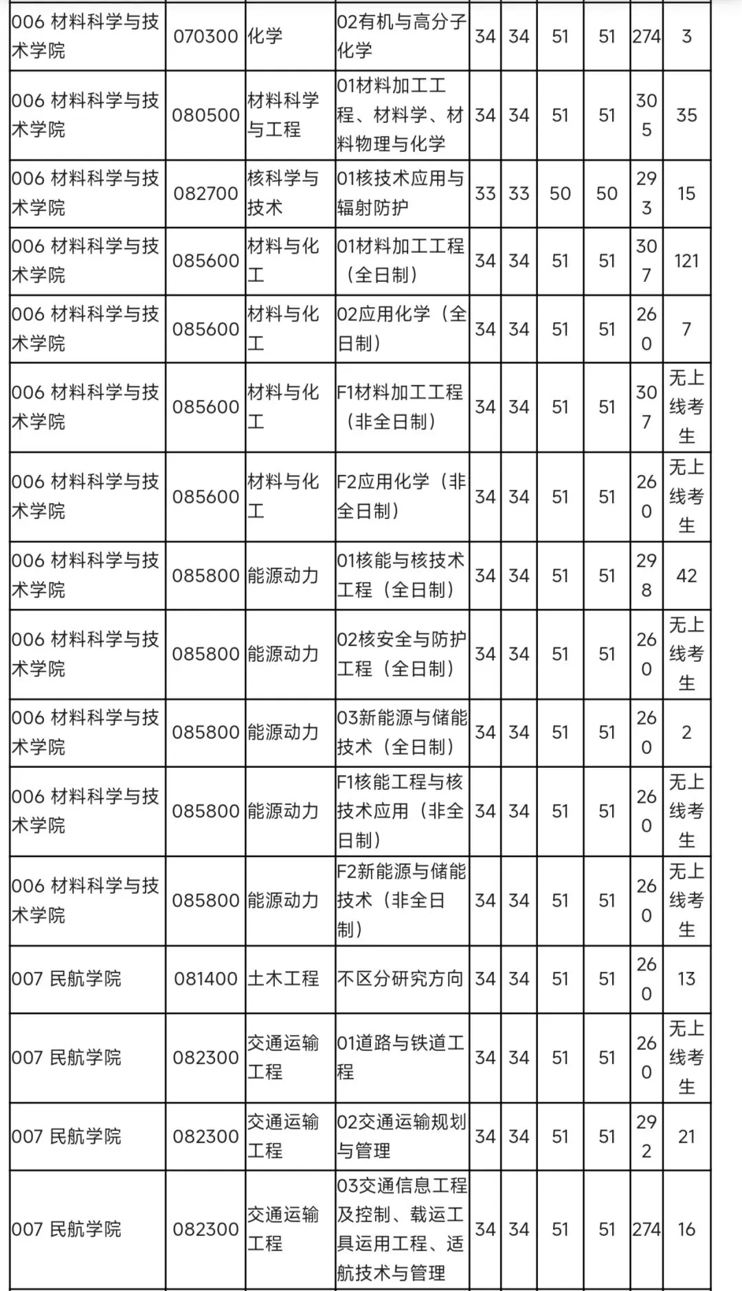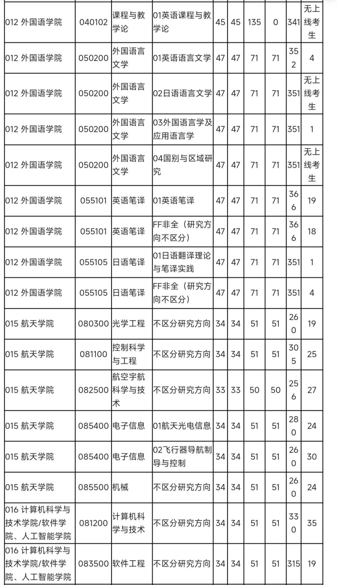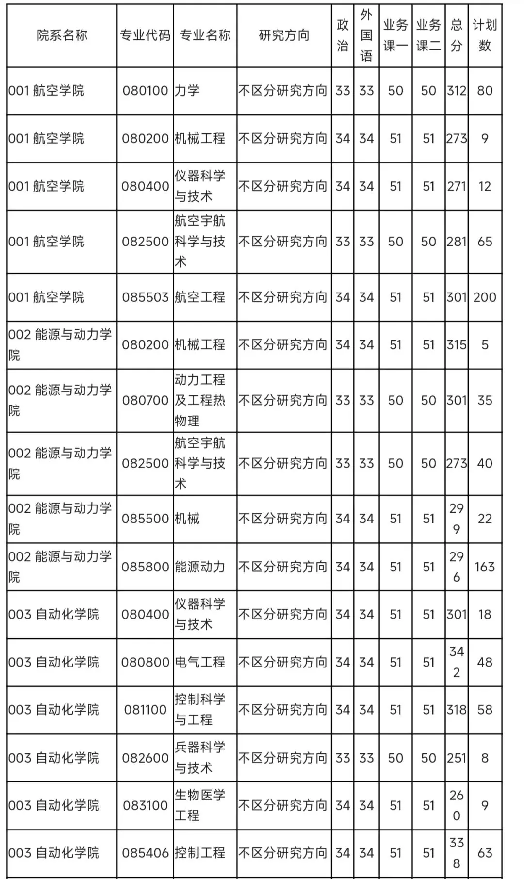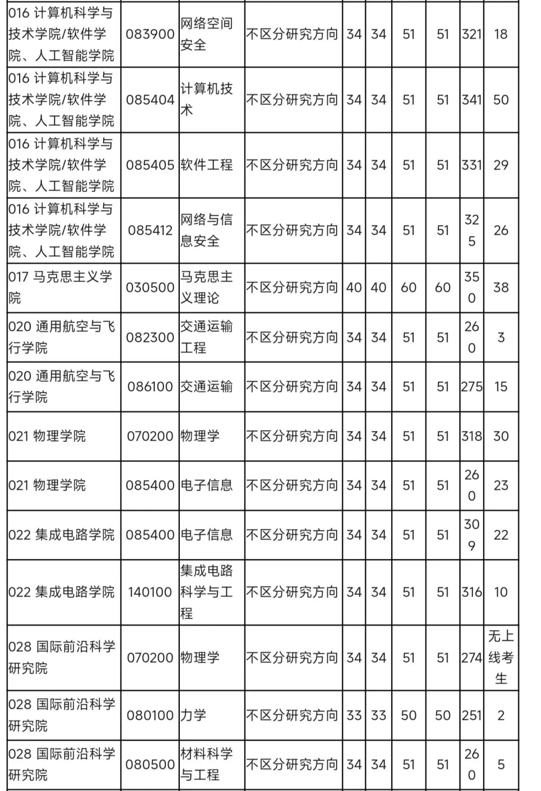 >南京航空航天大学2025年硕士考生进入复试基本分数线