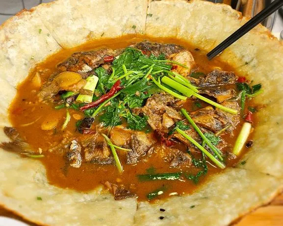 中午别找网红店。项王故里附近的小馆子更有意思。点份"车轮饼",外皮韧,肉馅香;来碗"骆马湖鱼汤",鱼肉细嫩,汤色奶白。