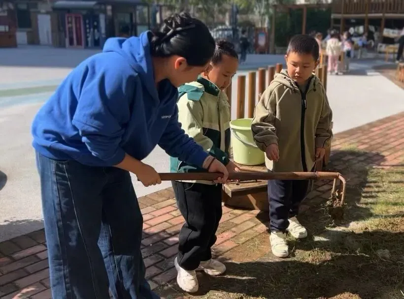 确定了种植的蔬菜,孩子们立刻变身 “勤劳的小农夫”,开始了菜地大作战。他们拿着小铲子、小锄头,把班级门口空地的杂草都清理得干干净净。接着,一起翻土、松土、浇水。大家都期待着小菜地的变化。