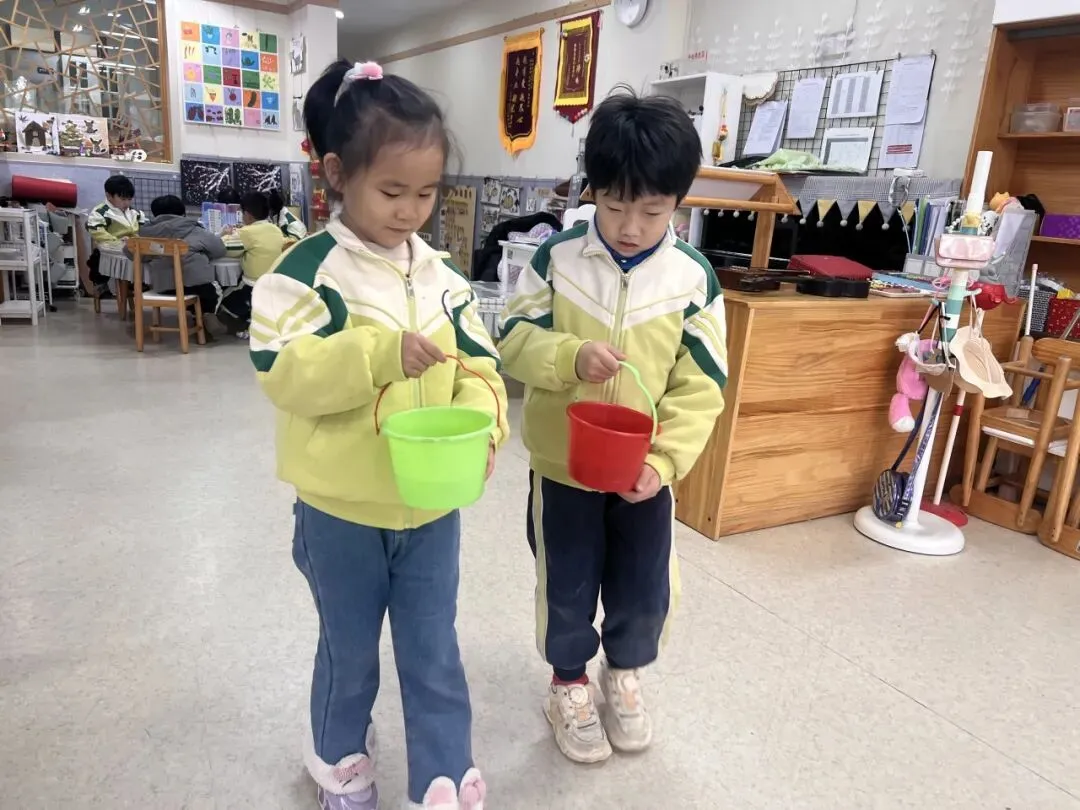 种子种下去了,浇水却成了大难题。从池塘提水,水桶太重,小朋友们根本提不动;从班级开水龙头接水,又容易洒得到处都是。这可怎么办呢?