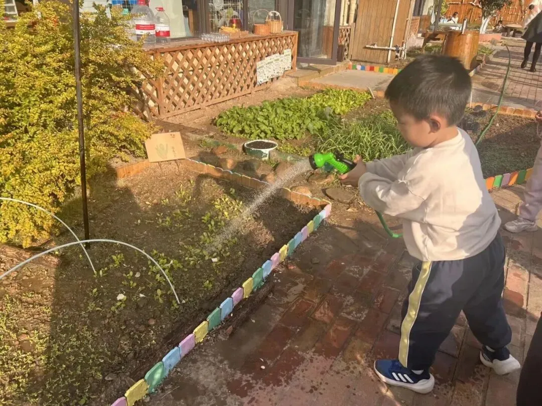 每粒种子都藏着悄悄生长的词,孩子们挥铲时,泥土翻开温柔的页,播种时,指尖落下希望的字,浇水时,露珠润了可爱的词。这方小菜地里,