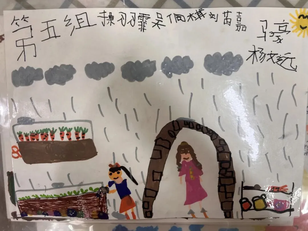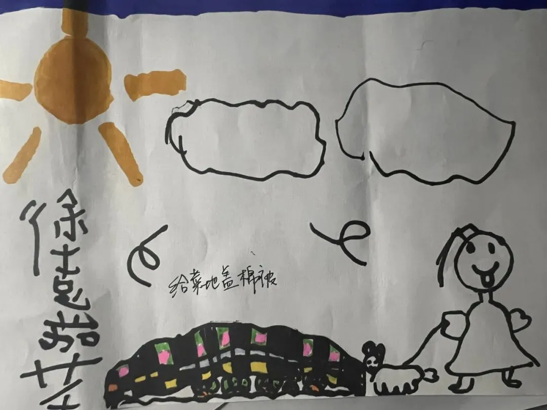 有的小朋友说要给菜地开空调,有的说要给蔬菜穿衣服,还有的说要给蔬菜盖棉被。