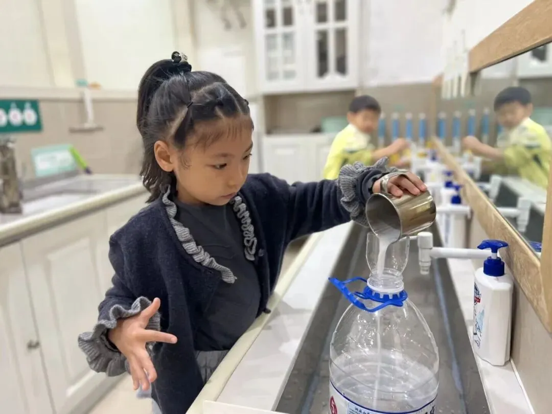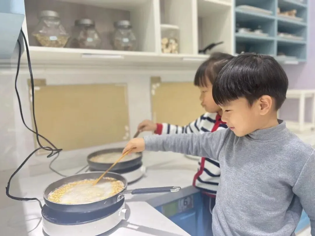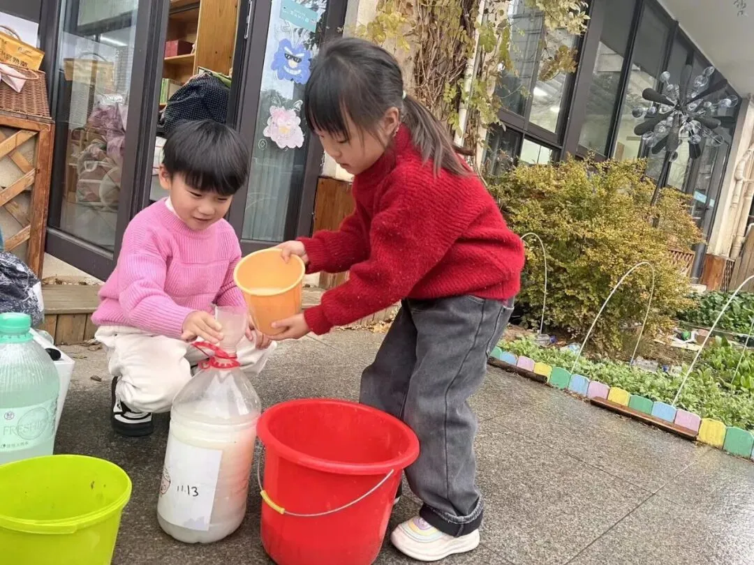 还有的小朋友想到了淘米的水和黄豆水也能做肥料,于是大家向食堂叔叔阿姨要来淘米水、来到了生活室煮黄豆水制肥。