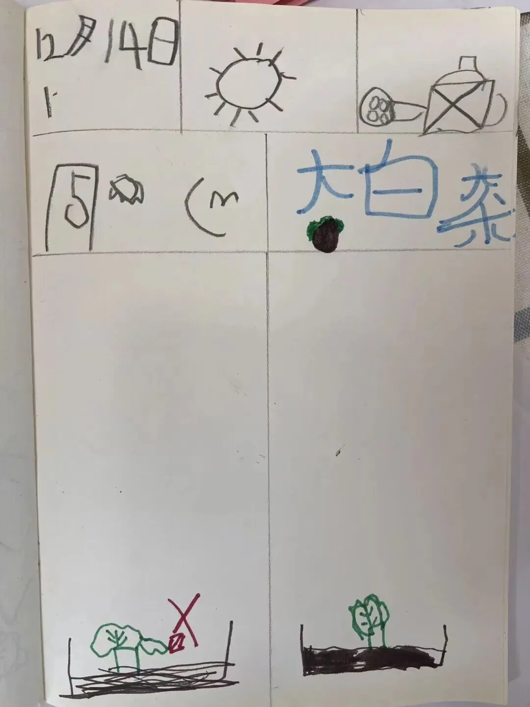 孩子们不仅在家里认真照顾蔬菜宝宝,还把幼儿园里观察记录的经验延伸,在家里也进行了记录。