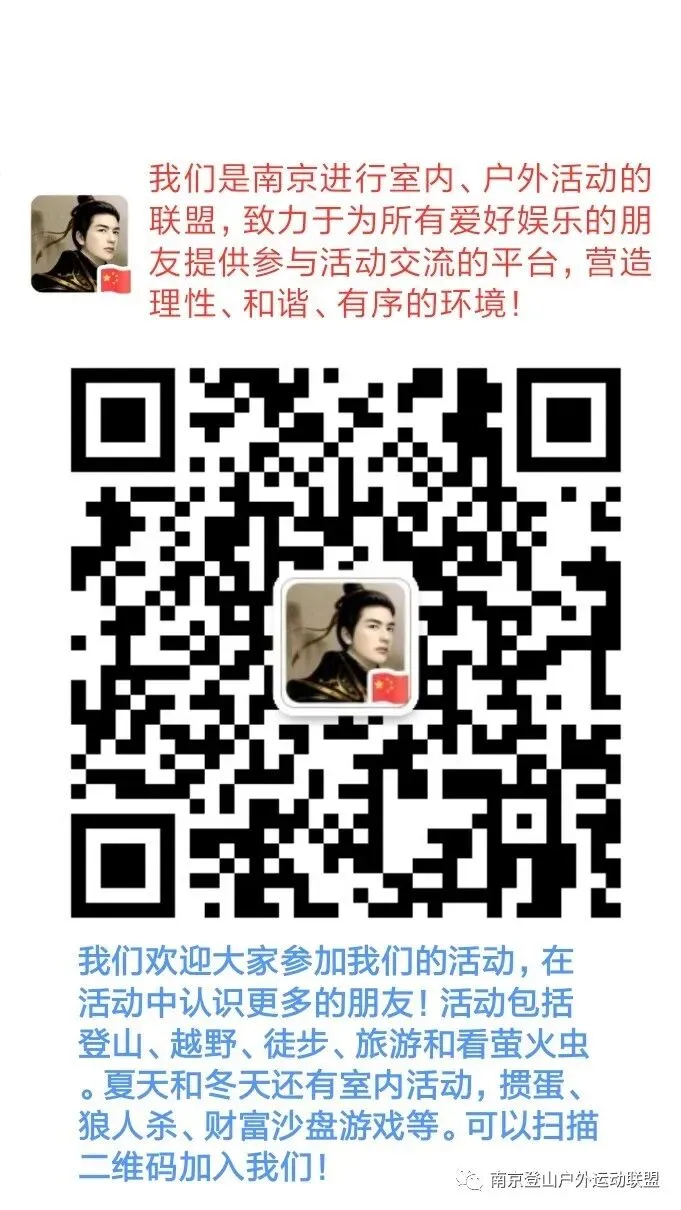 我们是南京地区进行室内活动和室外活动的联盟,我们活动目的就是致力于为所有爱好娱乐的朋友提供参与活动交流的平台,营造理性、和谐、有序的氛围,以便于大家在活动中认识更多的朋友!我们的活动有很大的挑战性和刺激性,我们就是要运动自己的身体,拥抱自然,挑战自我。今年会有60次活动,包括登山、走湖,徒步、越野、骑行、旅游和看萤火虫。夏天和冬天我们还有室内活动,掼蛋、狼人杀、财富沙盘游戏等。
