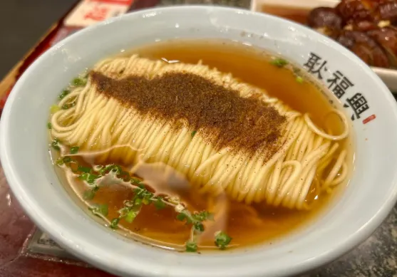 一定要尝尝这里的虾子面。不是能看到大虾的那种,而是把虾籽融进了汤里。