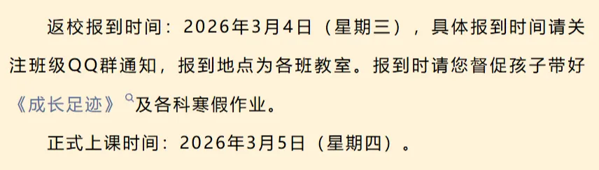 江苏省教育厅通知规定,2026年全省中小学、幼儿园寒假时间统一定为2月7日至3月4日,共26天,2月7日正式放假,3月5日正式上课。各地各校要第一时间将放假、开学时间告知全体学生及家长,并严格按照规定时间执行,无特殊情况不得推迟放假或提前开学。