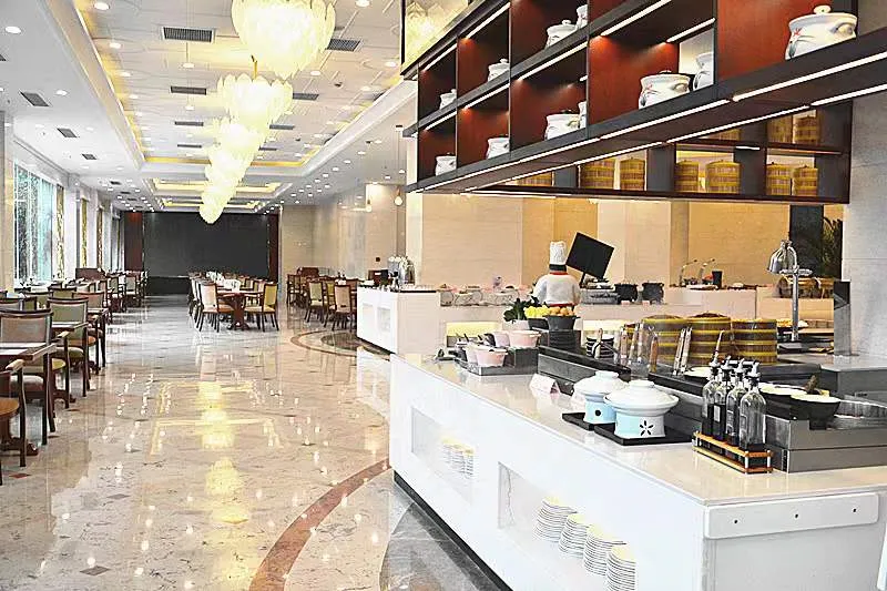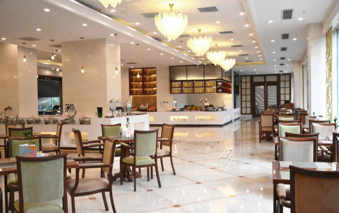 |全日制餐厅:全景玻璃幕墙下,一边品味中西式自助早餐,一边欣赏窗外绿意盎然。