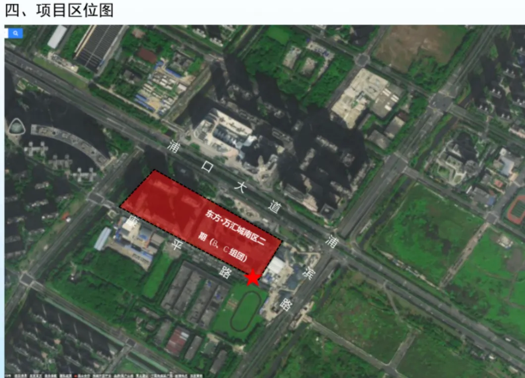 根据其公布的地理位置——“位于江浦街道,东至浦滨路,南至康平路,西至万汇城南区,北至浦口大道”,在地图上查询发现,这其实就是江北隧道口的东方万汇城南区三期商办楼部分!