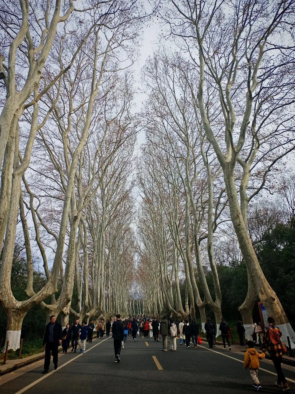 第一站便直奔梧桐大道。人真的很多,这里的梧桐,和别处真的不一样唉!每一棵都像顶天立地的战士,苍劲有力,白花相间的纹路整齐排列,像一排排忠诚卫士,静静迎接着每一个远道而来的人。