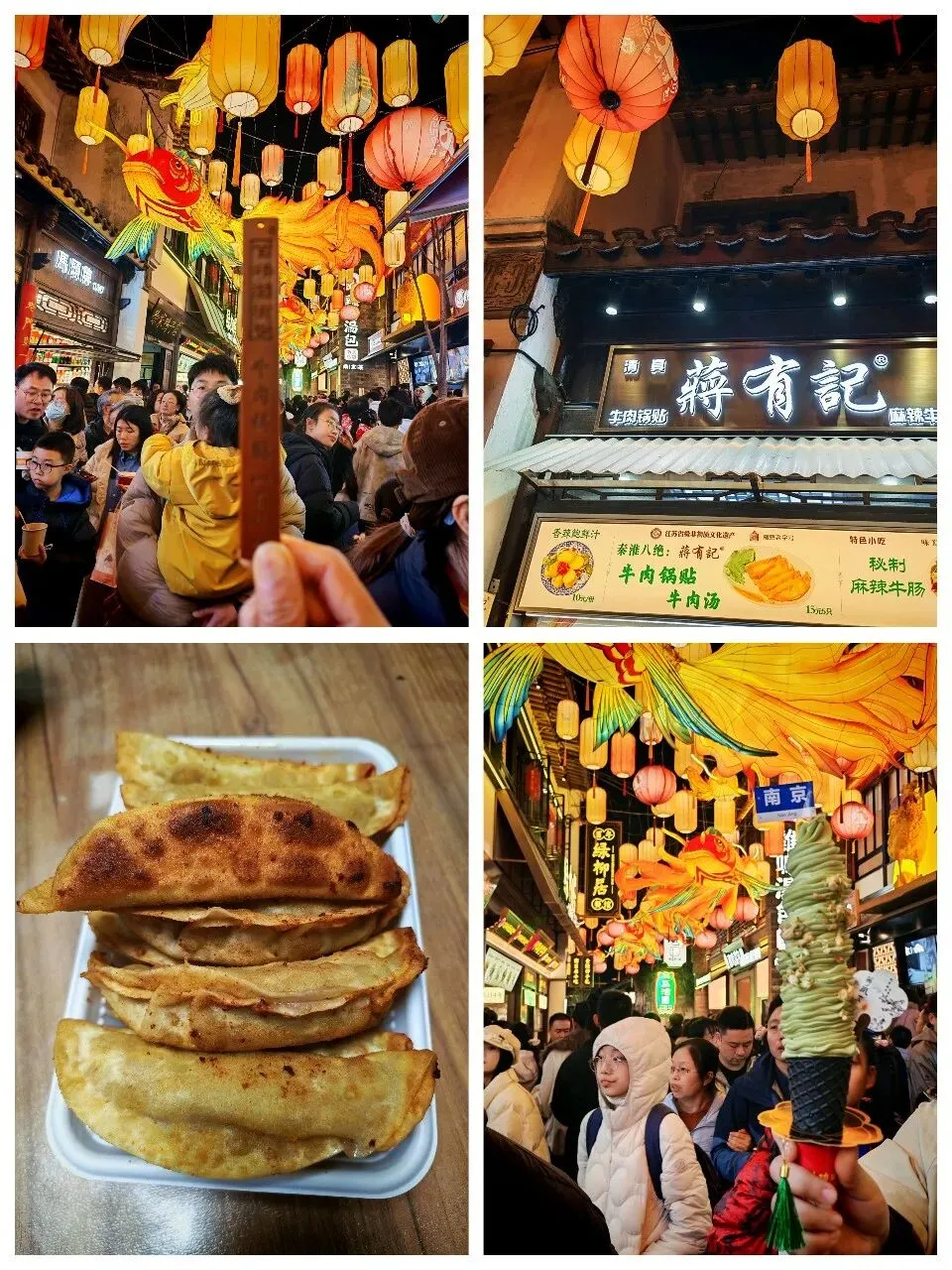 后来去排榜上有名的蒋记百年牛肉锅贴,队伍长得望不到头。