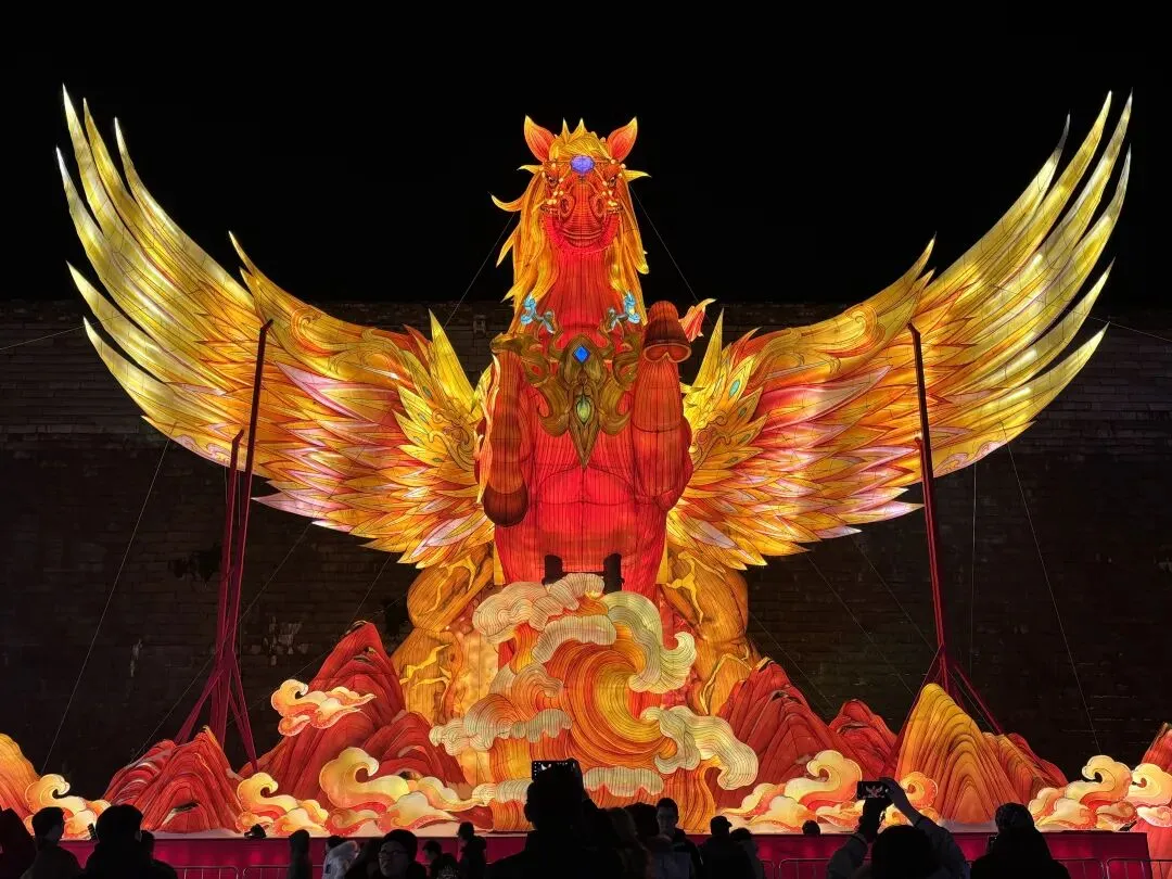 城墙边,巨型“飞马”灯组