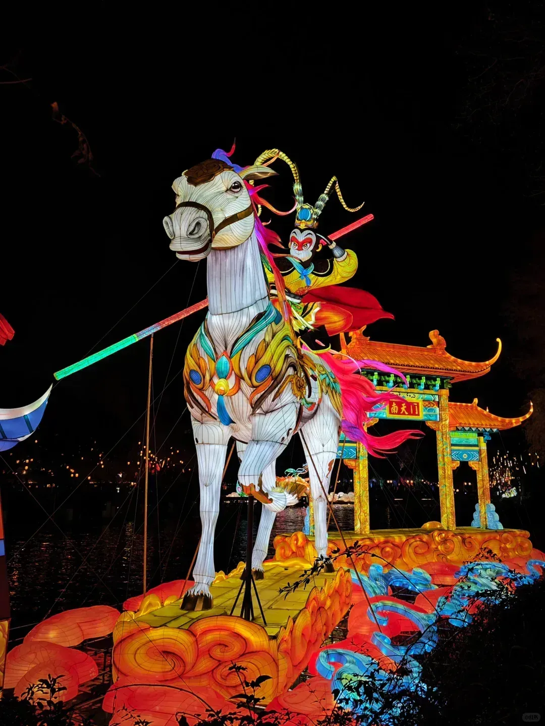 ○ 不过最引人注目的要数秦淮灯会上那匹驮着“大圣”的白龙马,踏光而来,威风凛凛,惊艳整个秦淮夜!