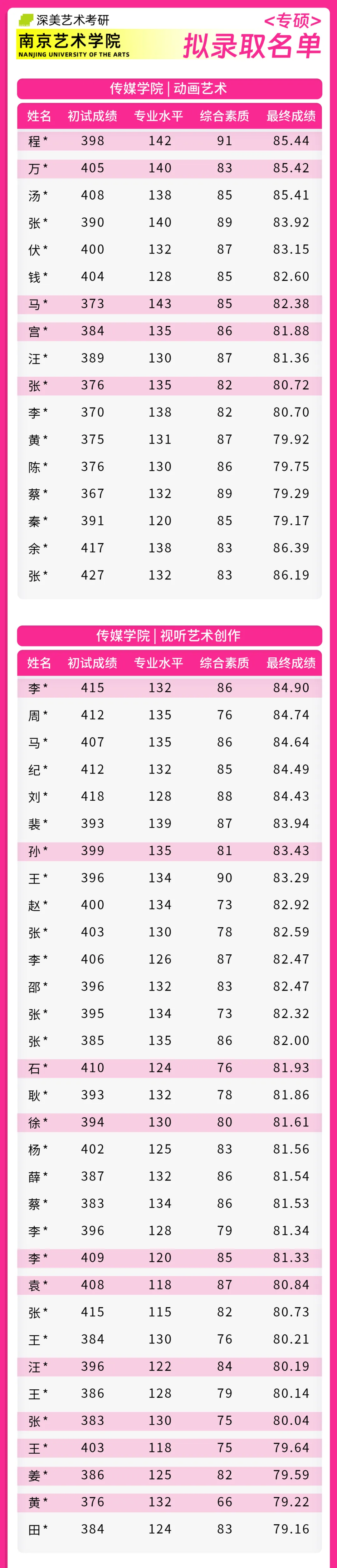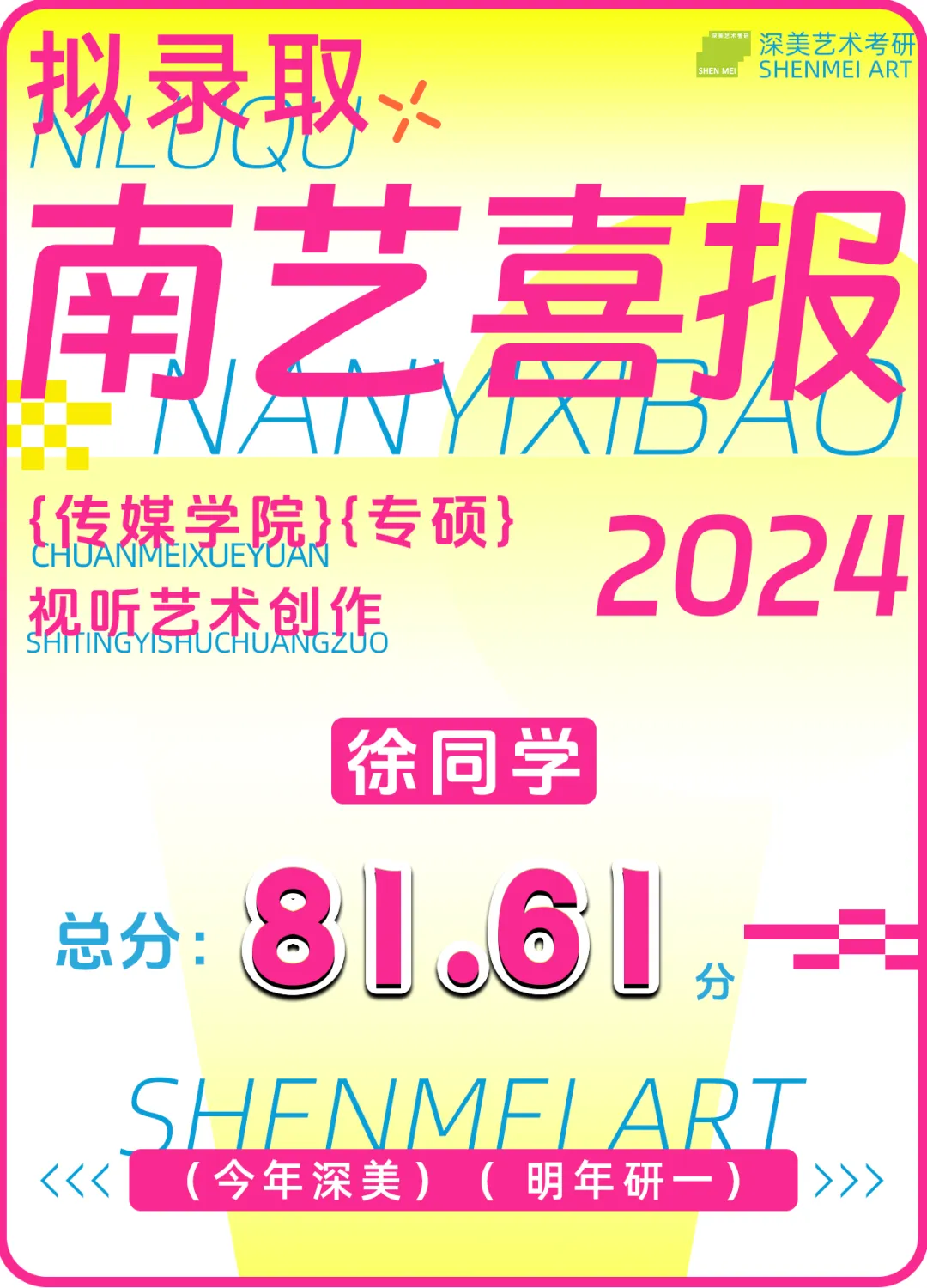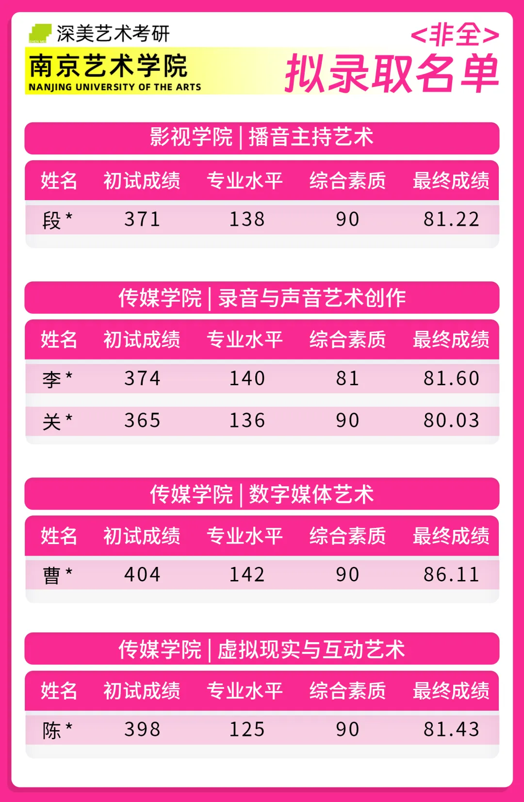 成功霸榜 | 回顾24届南京艺术学院拟录取名单!深美57位学员荣耀登榜!