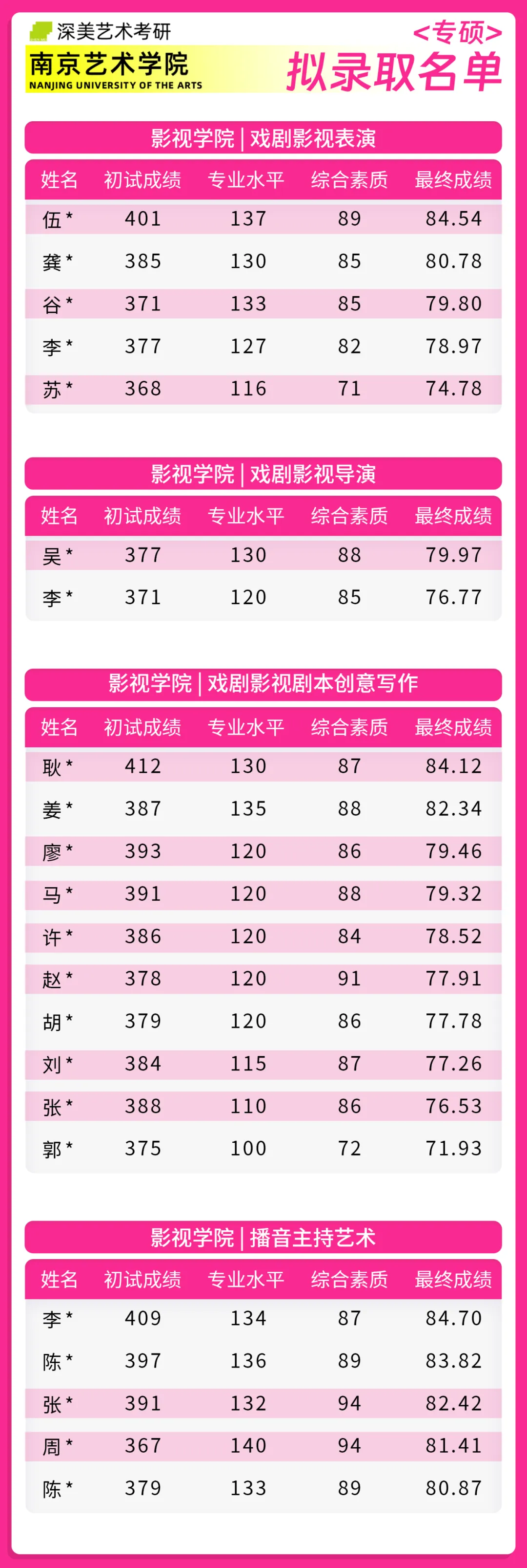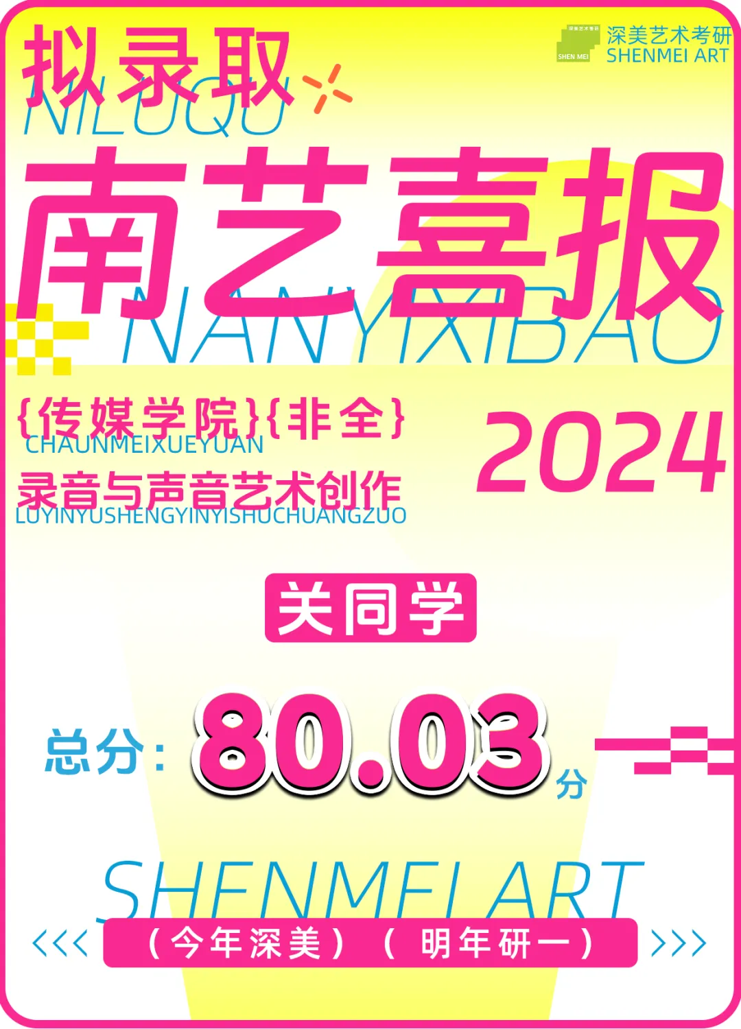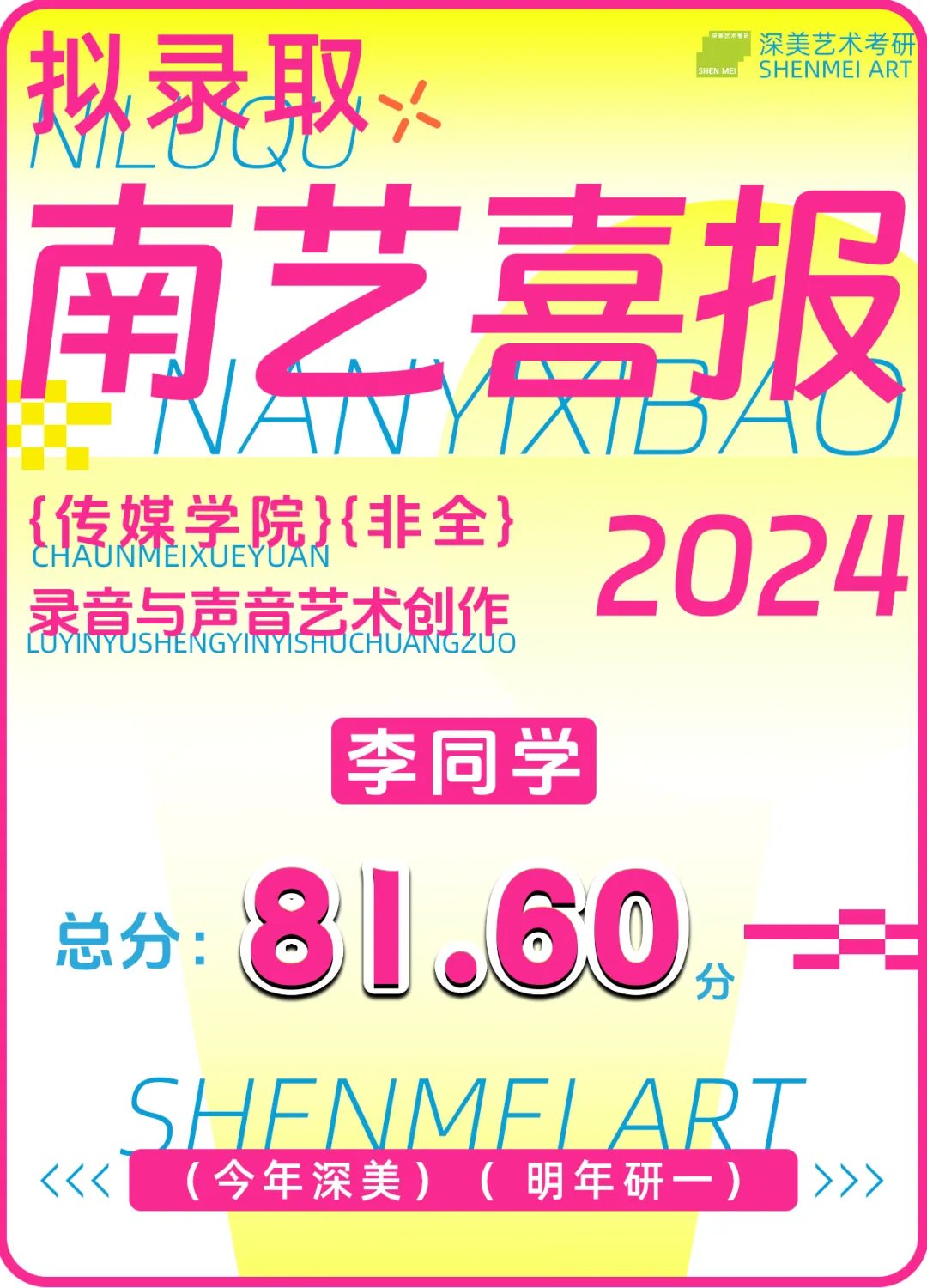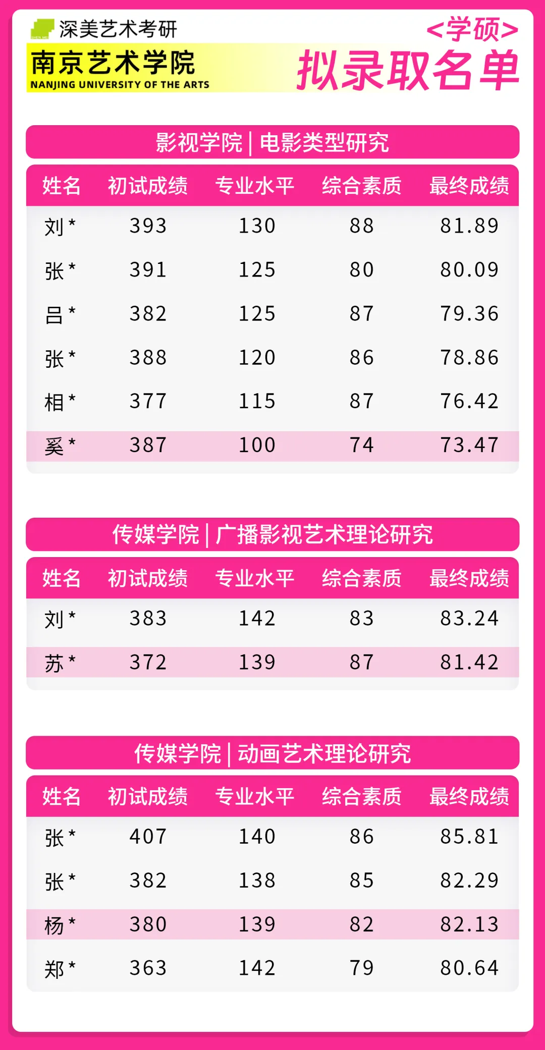 成功霸榜 | 回顾24届南京艺术学院拟录取名单!深美57位学员荣耀登榜!