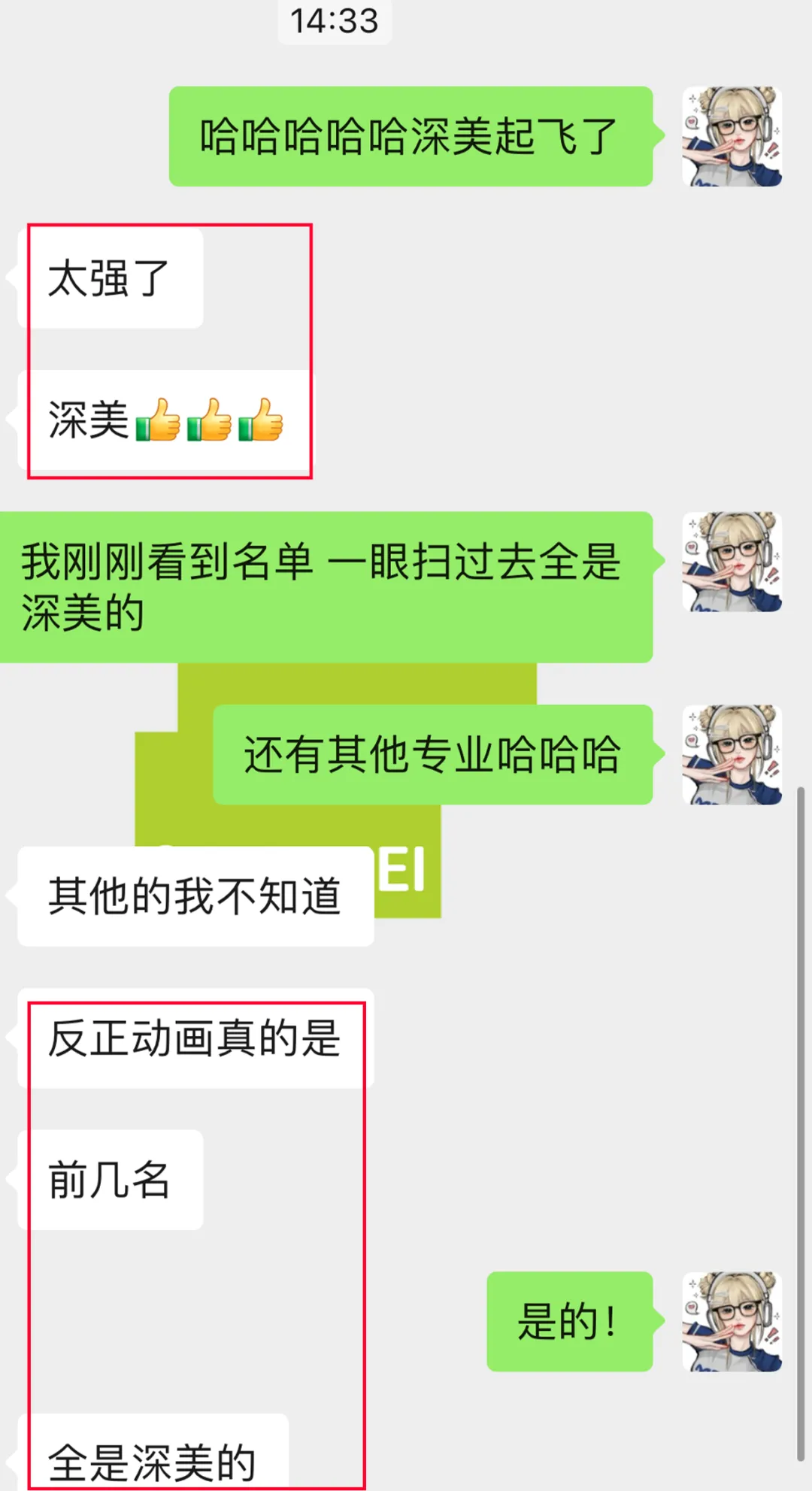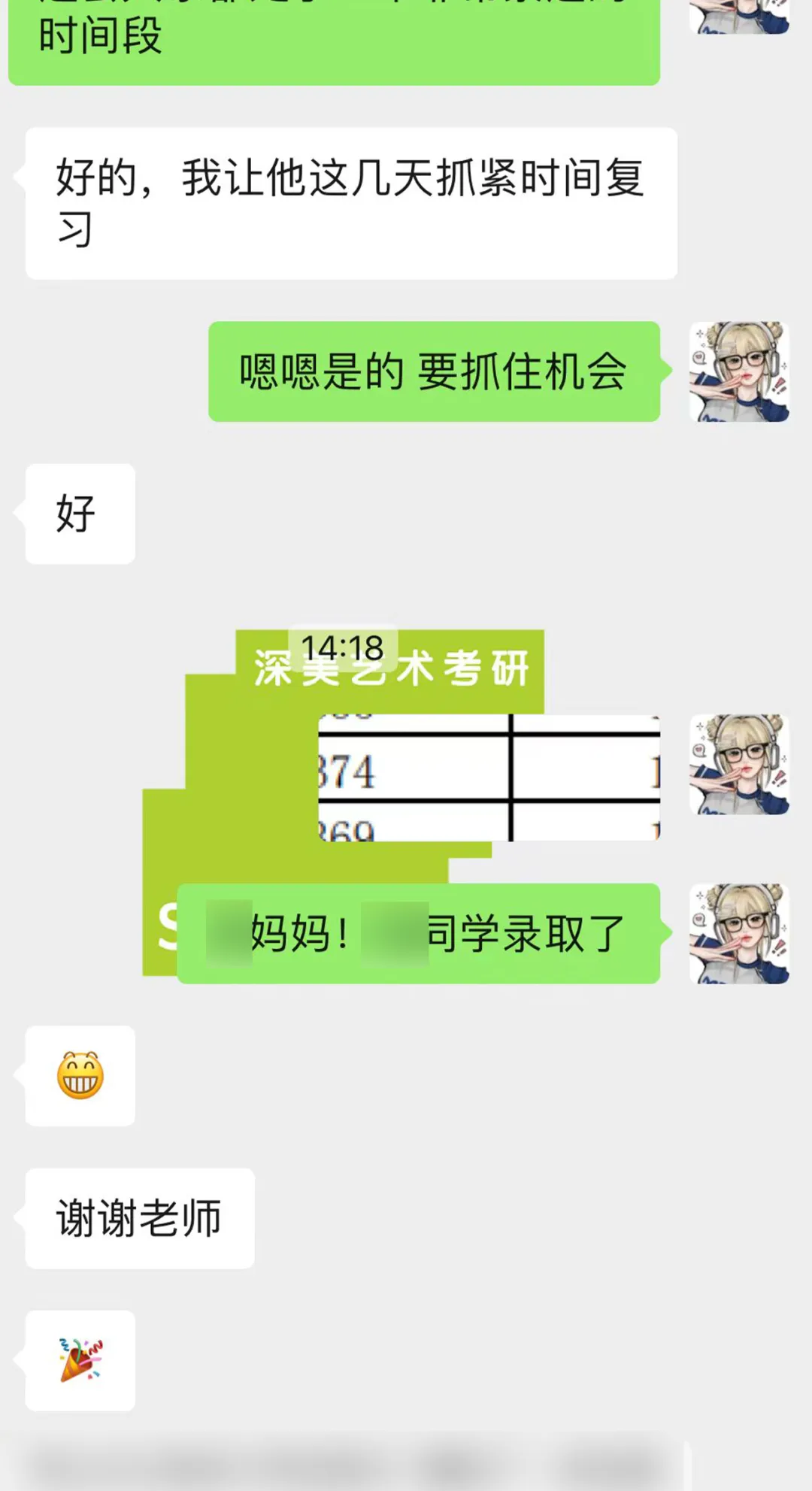 南京艺术学院24届考研拟录取名单的揭晓,对深美而言,宛如一曲悠扬的古琴,奏响了成功的旋律。名单中那些熟悉的名字,宛如一首首隽永的诗句,诉说着学员们的努力与坚持。这已是我们连续第10年在南艺考研的征途上,如诗如画,硕果累累。“路漫漫其修远兮,吾将上下而求索”,在过去的岁月里,我们与学员们一同跋涉在知识的海洋,一同探索艺术的深邃。他们的每一次进步,都如同“千磨万击还坚劲,任尔东西南北风”,在逆境中更显坚韧。以下是同学们与老师第一时间报喜的截图反馈。感谢同学们对深美的支持与信任。在未来的日子里,我们深美艺术考研将继续“根深固柢,美益求美”,坚持我们的教育理念,为更多的艺术学子提供坚实的支持与引导。让我们再次为这些优秀的学员们送上最诚挚的祝福,愿你们在未来的道路上,绽放属于自己的光芒。