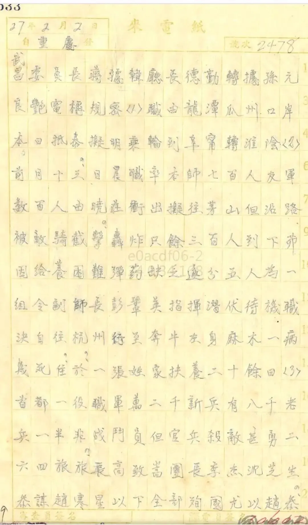 “武昌委员长蒋:据韩厅长德勤转据孙元良艳电称规密(1)