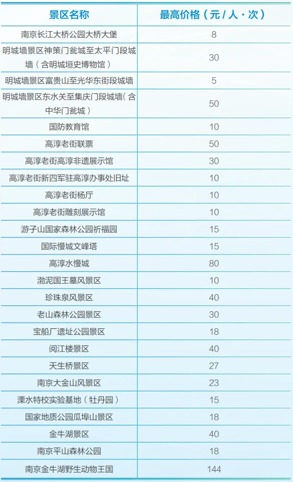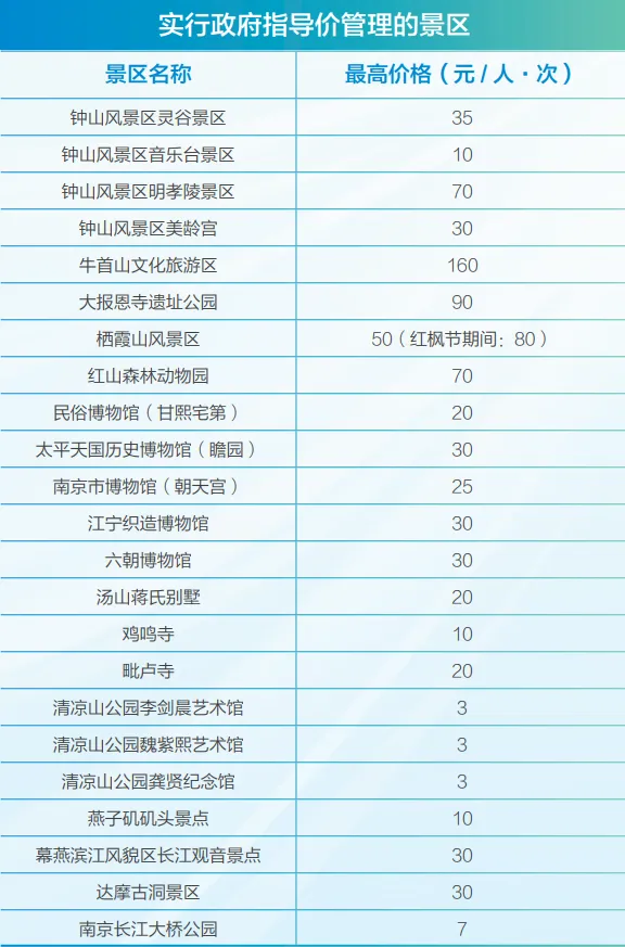 根据南京市发改委发布的《南京民生价格手册(2026年版)》,以下实行政府指导价管理的景区: