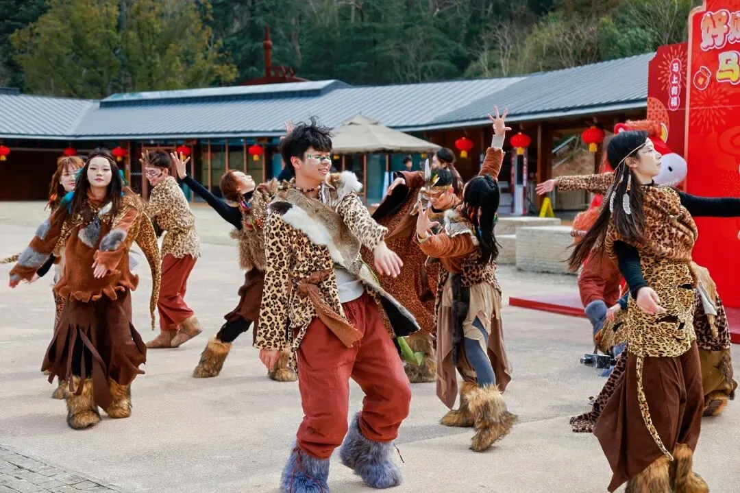 在猿人洞,一场名为“疯狂直立人” 的狂欢颠覆了所有人对溶洞游览的认知。这里不再是单调的喀斯特地貌科普,而是一场以《疯狂原始人》为主题的“野生派对”。20人的演员团队将这里变成了原始部落,当你在钟乳石林立的洞内穿行,突然被“部落族人”拉进队伍,学着他们的样子“蹦迪”祈福,那种穿越六十万年的文化共振,让人忍不住感叹:春节,本该就这么“野”。