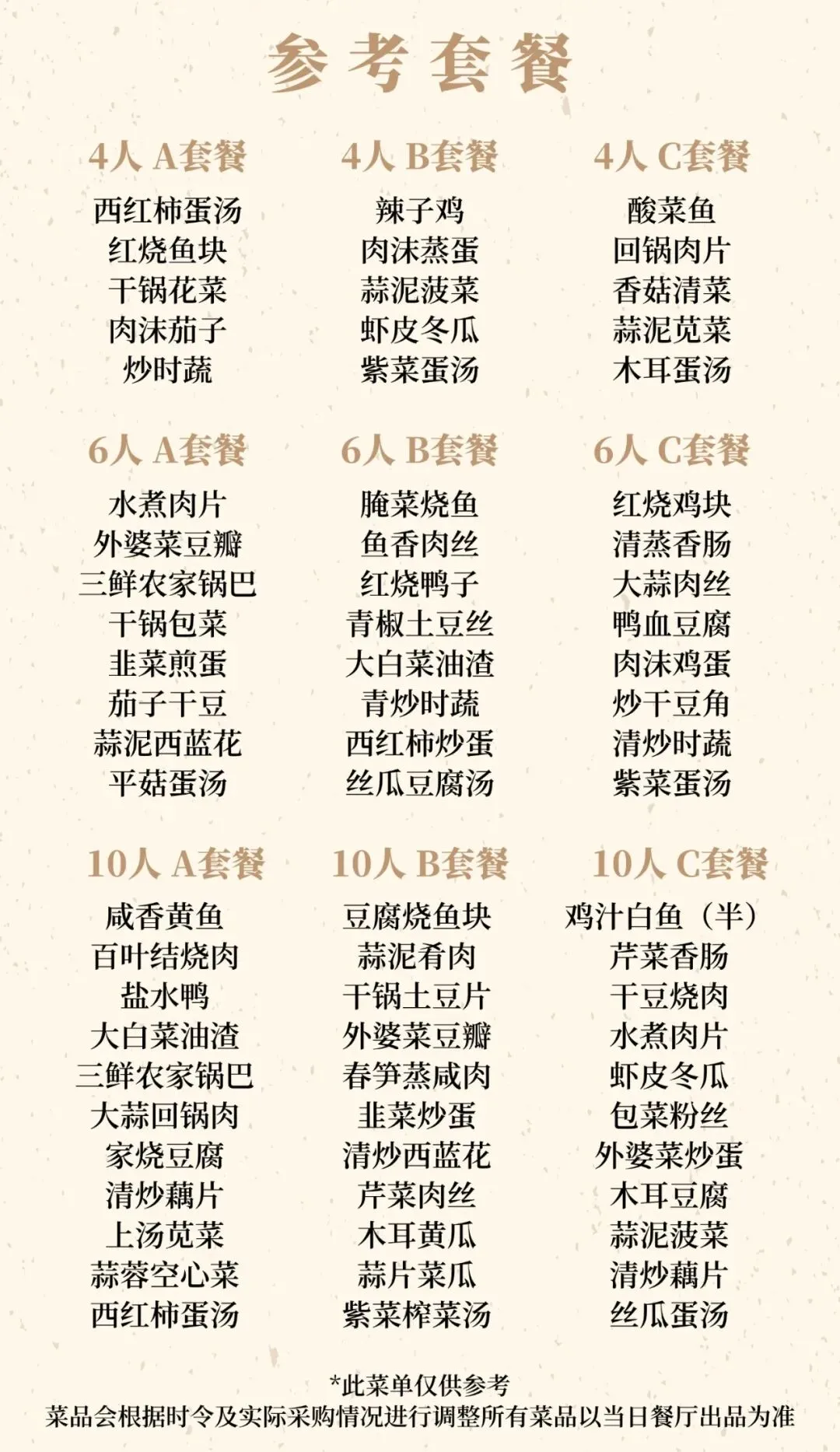 *酒店默认第一天吃午餐,菜单根据人数调整。