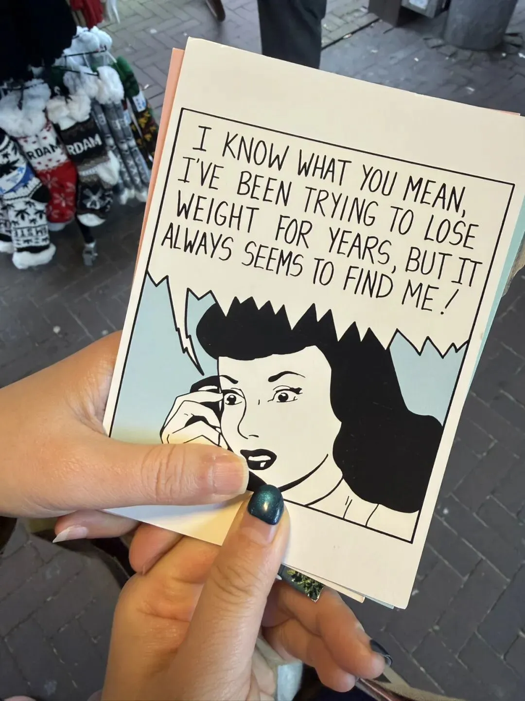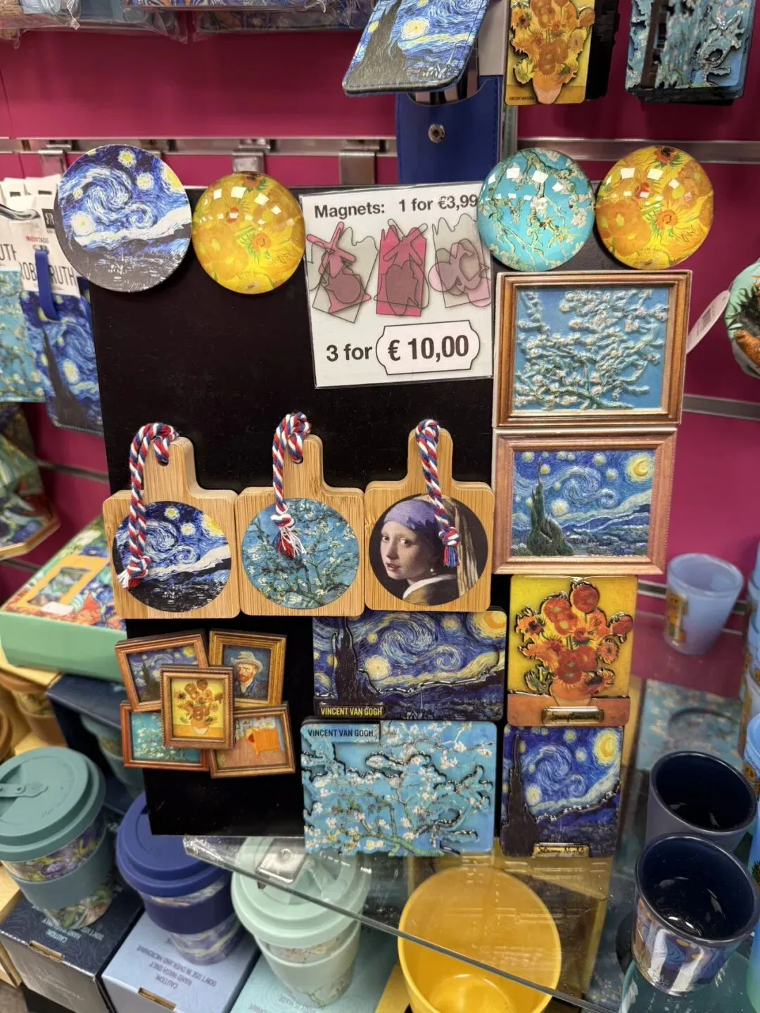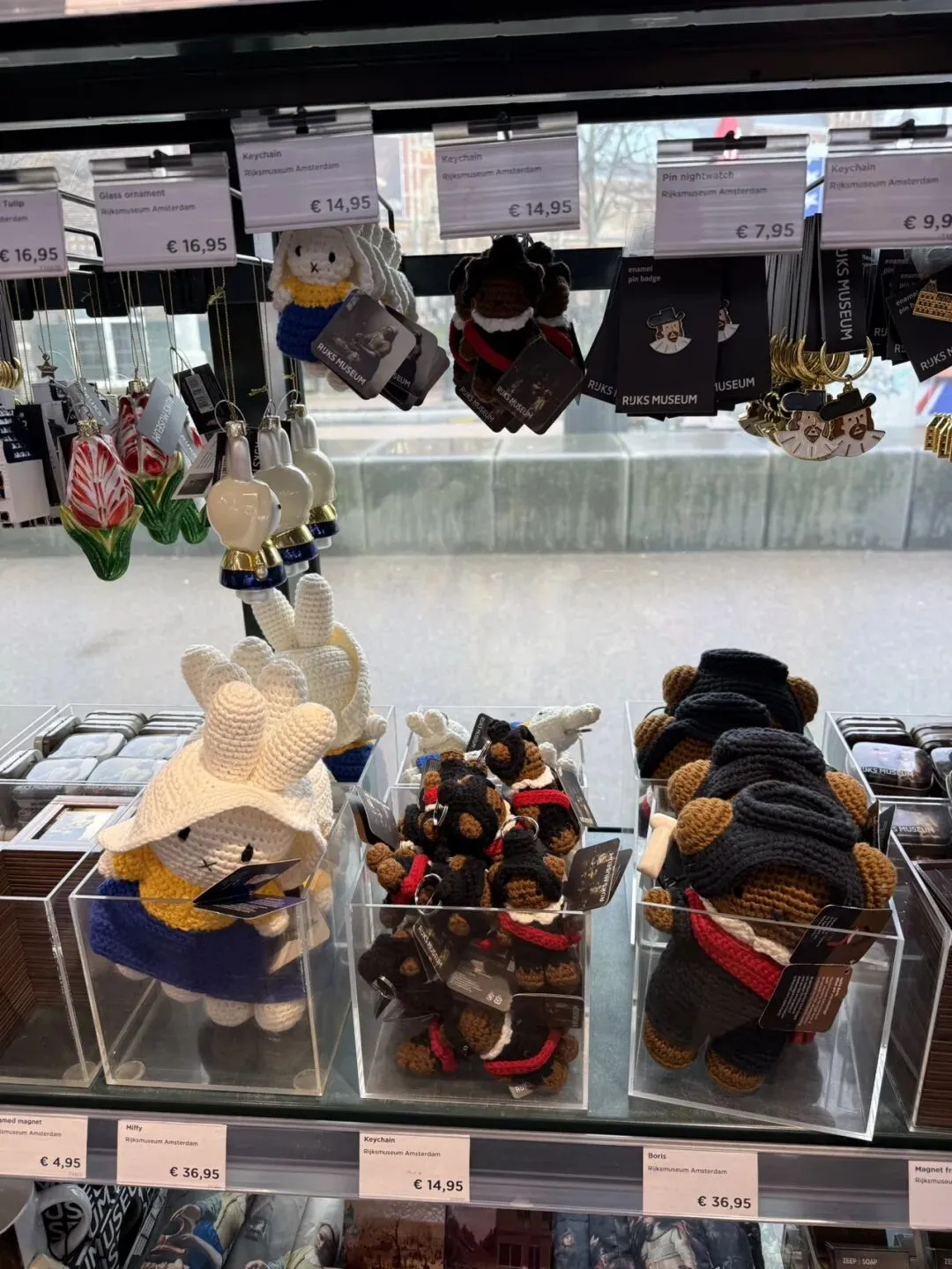 奶牛兔是米歇尔的作品,然后伦布朗我是买了一个夜巡的熊,然后梵高买了一个梵高的人偶,基本上每个周边都有了,然后每一个博物馆其实我也都买了冰箱贴生气 这个左下角我在梵高博物馆买的5副画是7欧 这里就3欧继续各种逛逛,找到了一个小红书上说很火的鞋子,但是感觉时间是我驾驭不了,大汉在旧店里买了一些明信片,我的天这种店我在欧洲经常能遇到,都属于在我家,一定会被很早就扔掉的东西不过这个明信片写得挺好的,仿佛就是我虽然说了几万次减肥,但是一直没有付出与行动又买了巧克力,因为看不懂,我以为是七欧结账的时候才知道是七欧是一两,小盒是二两,所以是15块钱,味道还不错,里面是杏仁的外面是松露的,他也撑了几颗价格比比利时贵,但是我搜了一下,这个牌子是全球前10的走着走着又想上厕所了,但是不想花钱上厕所,于是又去咖啡馆上厕所我登机以后苹果也顺利到达阿姆斯特丹,大汉开始了他的迎来送往我的左手边就是他的位置,相当于他2000多块钱的回程票就浪费了,不过我的旁边就可以空着一个人也挺舒服的,上海见咯大年初五的中午我就能到上海了