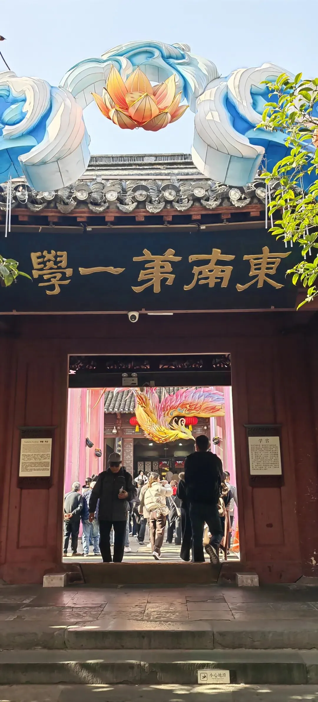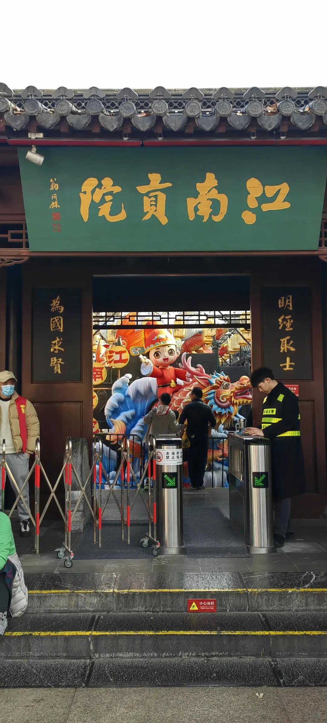 清初为江宁府学;咸丰年间(1850s) 太平天国战火几乎焚毁全庙;同治年间(1866年后)曾国藩、李鸿章主持重建;府学迁朝天宫,此处专作孔庙与民俗街区;江南贡院在清代达巅峰,号舍2万余间,为全国最大科举考场。