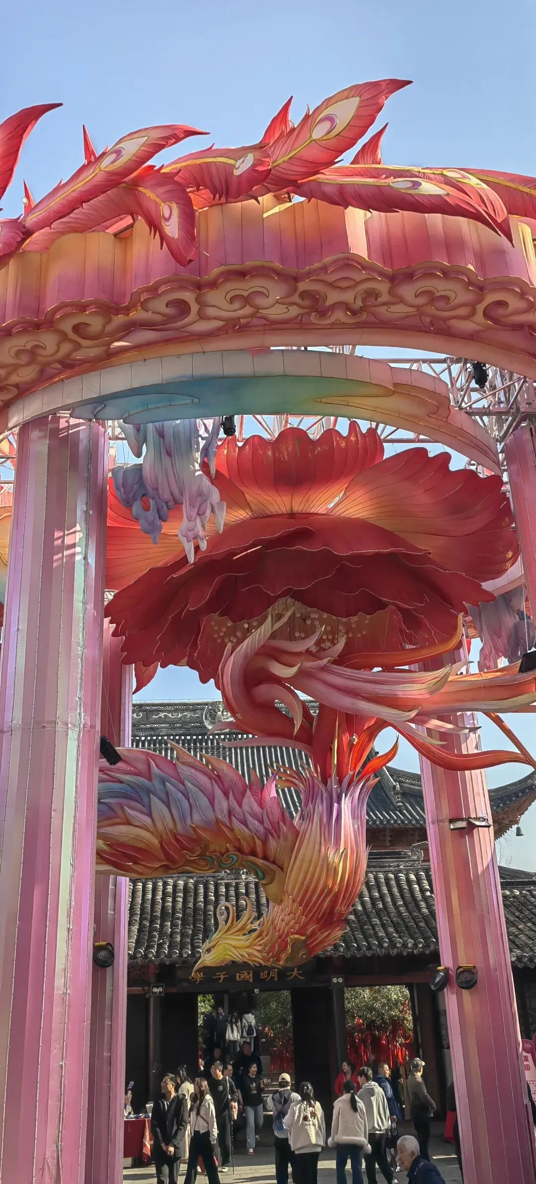 元朝改称集庆路学;明初为国子学(京师最高学府),洪武14年(1381)国子监北迁鸡鸣山,旧址改为应天府学,并入上元、江宁两县学;明代江南贡院扩建,夫子庙周边成为科举文化核心,“天下文枢”地位确立;秦淮灯会也在明代走向兴盛。