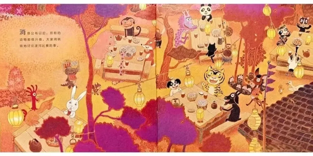 消息公布以后,所有的动物都很兴奋,大家闹哄哄地讨论渡河比赛的事。