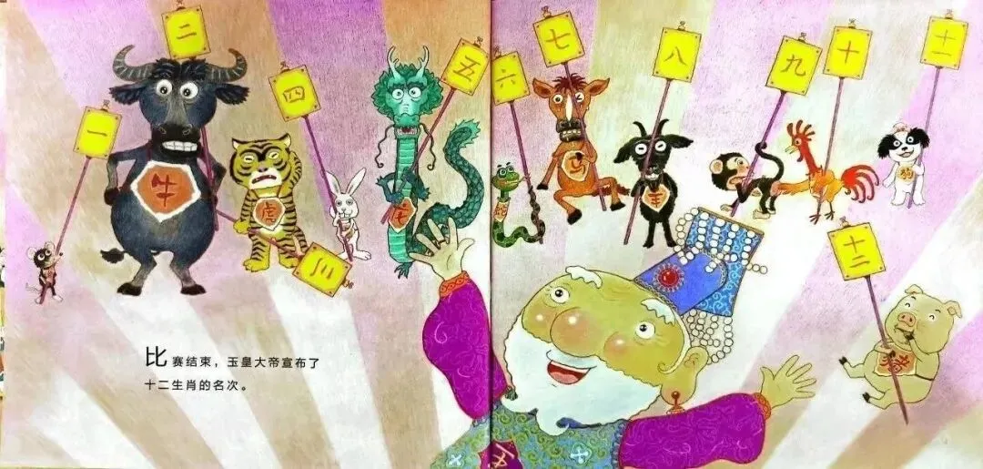 玉皇大帝想了一个办法:记年份太难,记动物的名字就简单多了,找出十二种动物代表年份不就行了吗?玉皇大帝通知土地公,请他去发布选拔十二生肖的消息。