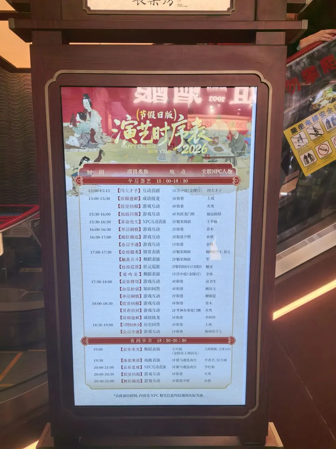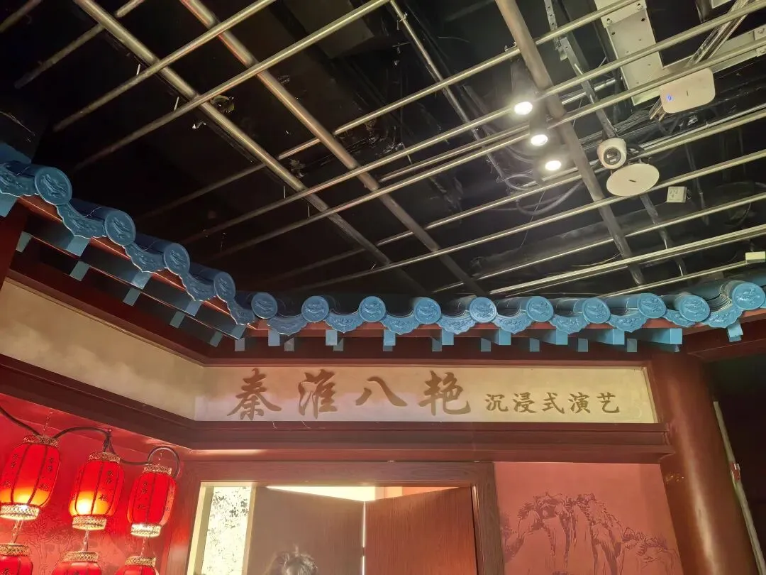 3️⃣更是表演打卡点:在中庭的位置,有很多免费的表演,关键还是全天候的,包括《长乐未央》大型歌舞、四大才子情景喜剧、金榜题名巡游等主题演出,大家可以关注时间表,去打卡;三楼还有秦淮八绝沉浸式演出馆,可以买票进去观看,是比较轻松结合茶饮的沉浸式演艺