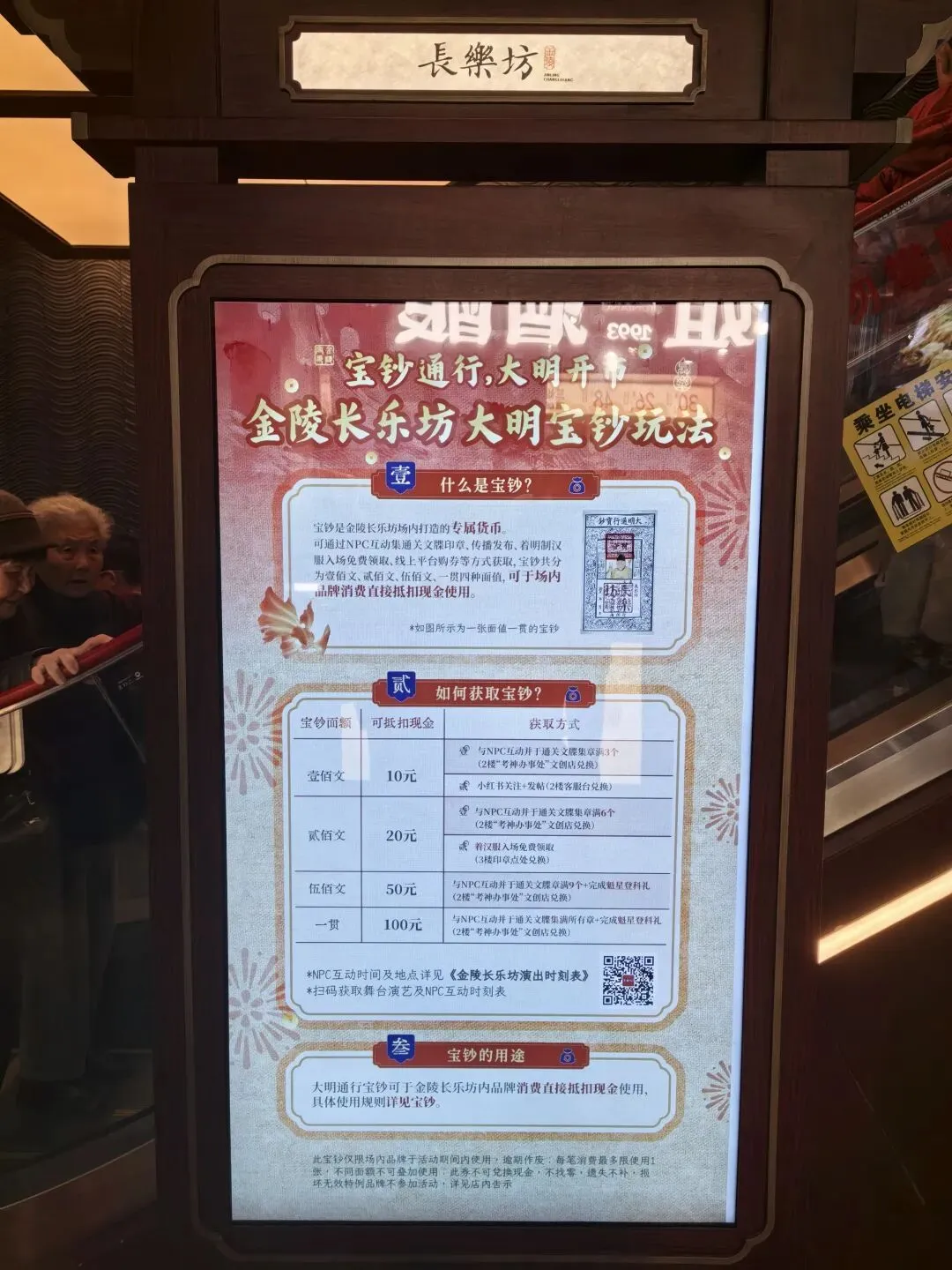 ✨金陵长乐坊是一个大明文化主题的沉浸式体验商场,致力于打造一座“可走入、可体验、可生长”的文商旅综合体,里面集吃喝玩乐于一体,同时还增加了NPC互动游戏,(PS:48元买通关文牒参与游戏,全天打卡和NPC互动挣银票抵用商场消费券),在中庭的位置有定时表演,表演是免费的💕