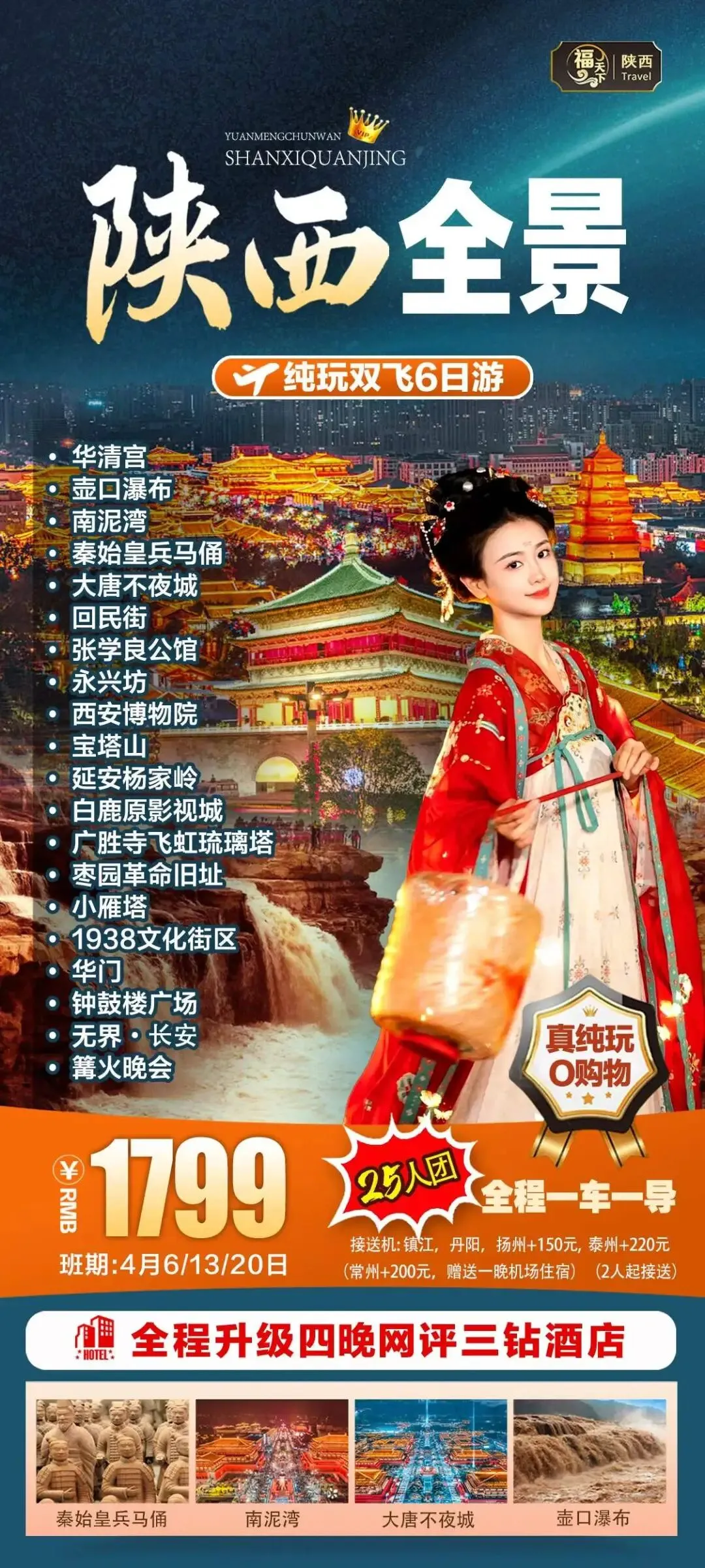 ✔️ 打卡西安➕晚安:兵马总➕华清宫➕壶口瀑布➕南泥湾➕大唐不夜城➕回民街➕西安博物院,精华景点全覆盖✔️
