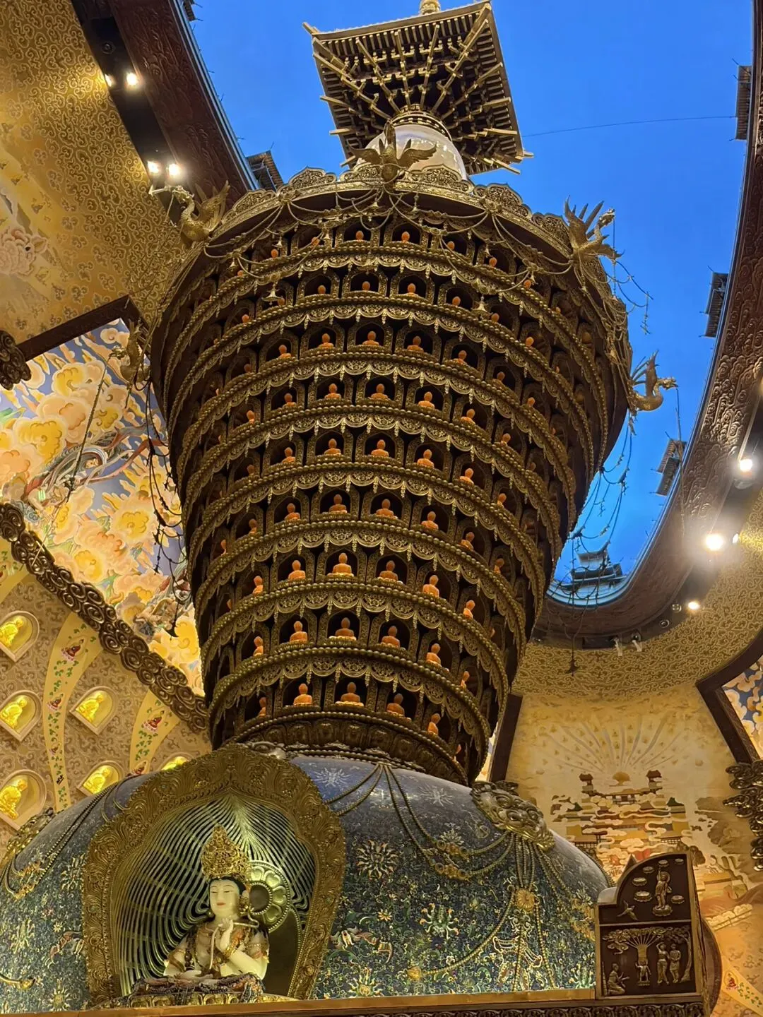 佛顶圣境建筑群:佛顶宫(矿坑改造,莲花托珍宝造型)、88米佛顶塔、伽蓝七堂规制的佛顶寺,与明代弘觉寺塔形成双塔辉映。