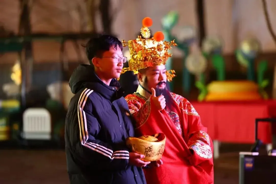 他手里稳稳端着一个大“金元宝”,当他走到人群中,无论是穿着厚实羽绒服的中年大哥,还是被妈妈牵着的小女孩,所有人都像个贪心的孩子一样,满怀期待地摊开了双手。