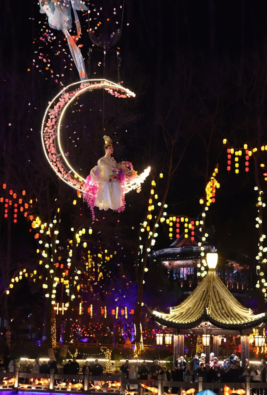 当明镜湖畔的灯光悄然亮起,“天女散花”换上了东飞天的轻盈面容。