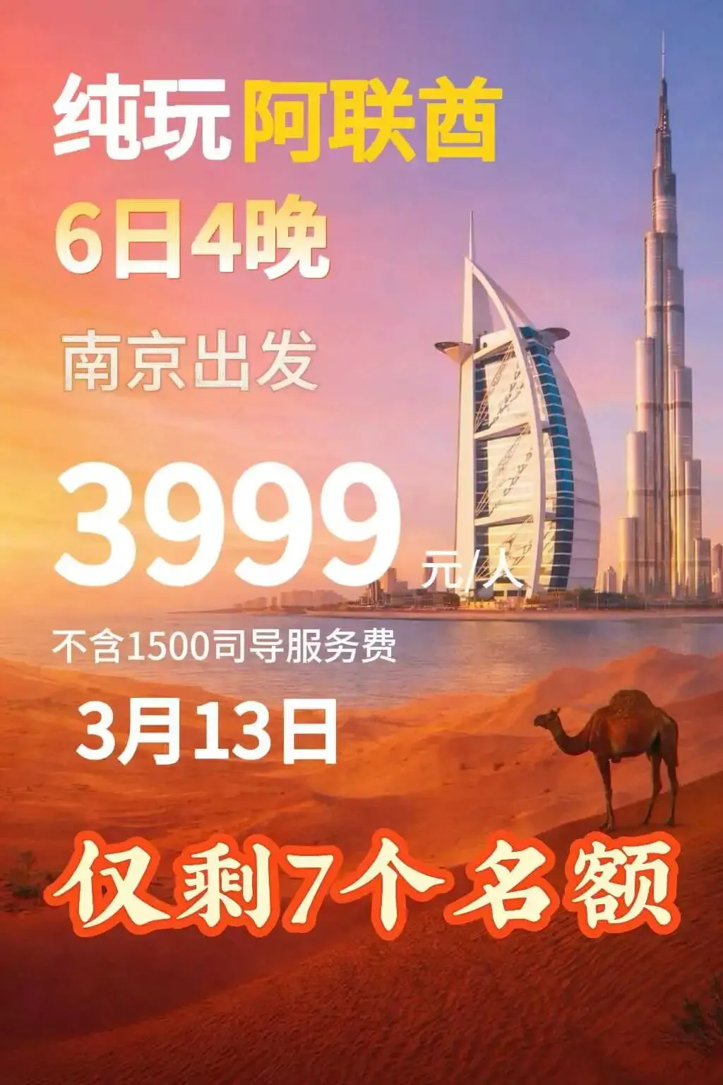>南京出发阿联酋迪拜6天纯玩无购物3999元起
