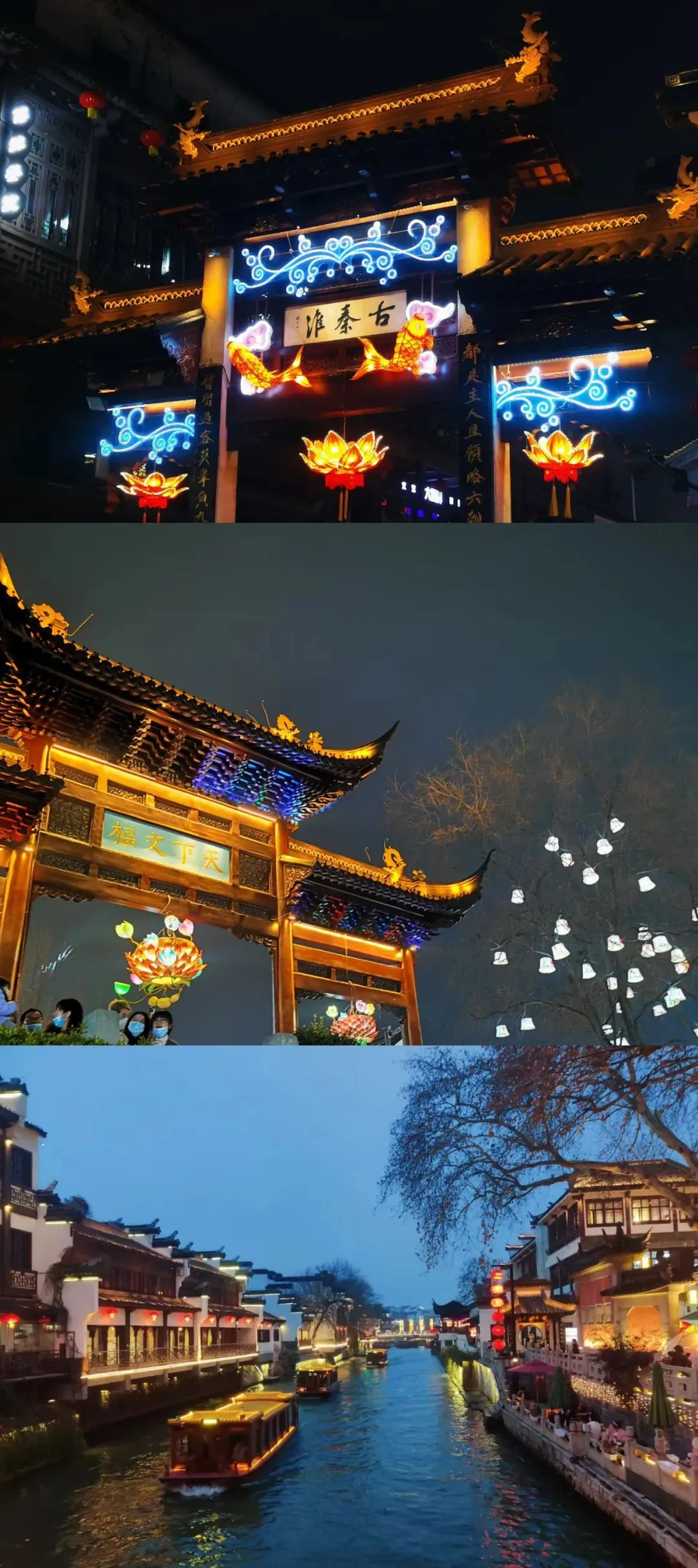“锦瑟微澜棹影开,花灯明灭夜徘徊”多少文人墨客在这里留下诗篇。坐船夜游秦淮河,两岸的烟雨楼台缓缓向后移动,仿佛要驶向千年前的那个梦幻古都。灯火通明的石桥上,站着看风景的人,却不知自己亦是景中人。