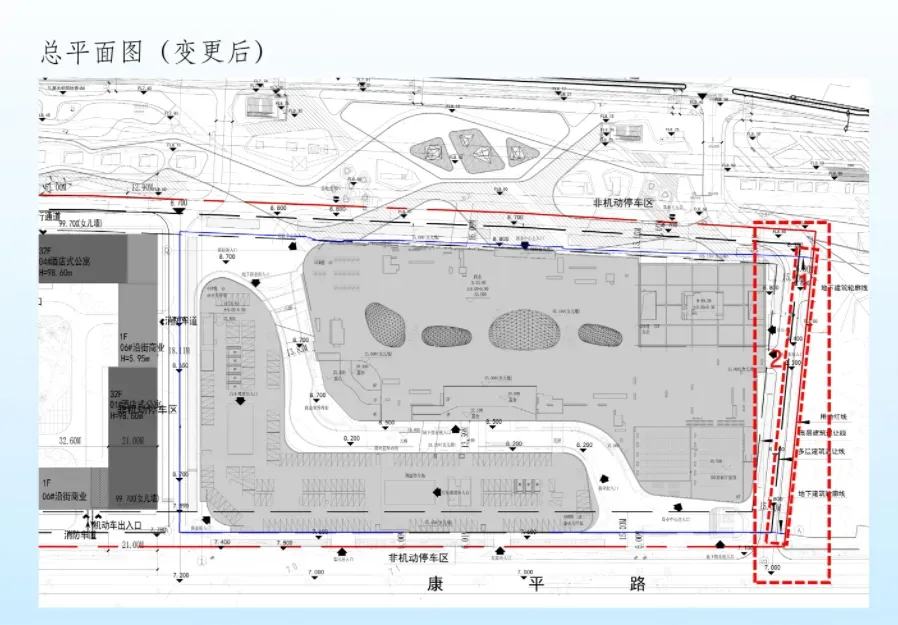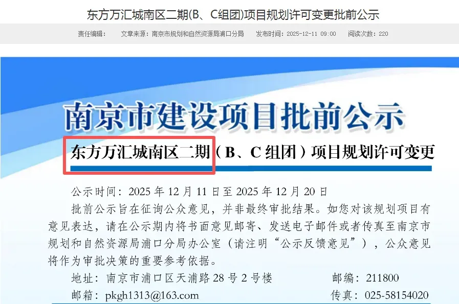 去年12月,南京官方网站发布了《东方万汇城南区二期(B、C组团)项目规划许可变更批前公示》,对原方案进行了调整: