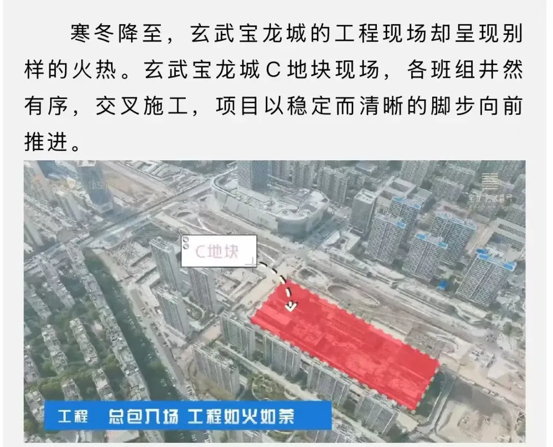 12月初,“宝龙地产IN南京”官微发布文章,明确玄武宝龙城C地块(公寓楼地块)总包入场,各班组交叉施工的施工进展,玄武宝龙城确定复工