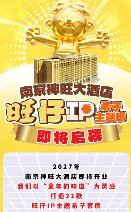 11月,神旺大酒店官方曝光了南京项目最新装修,将打造旺仔IP亲子主题房,效果图曝光,并官宣2027年开业