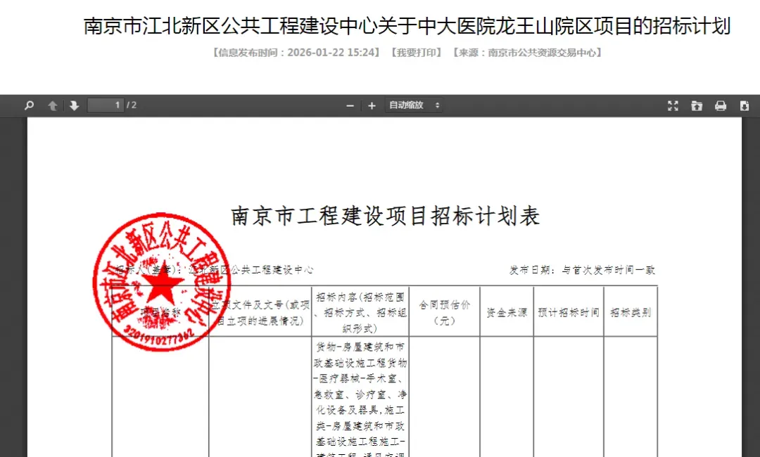 停工3年、备受关注的三甲医院——中大医院龙王山院区,终于再次启动:1、项目被列入南京市2026年经济社会发展重大项目名单