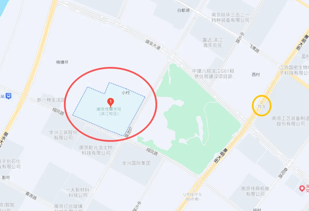 也就是下图中圈出的位置,位于江宁滨江,和今年即将开通的S2宁马线牧龙站直线距离约1公里。