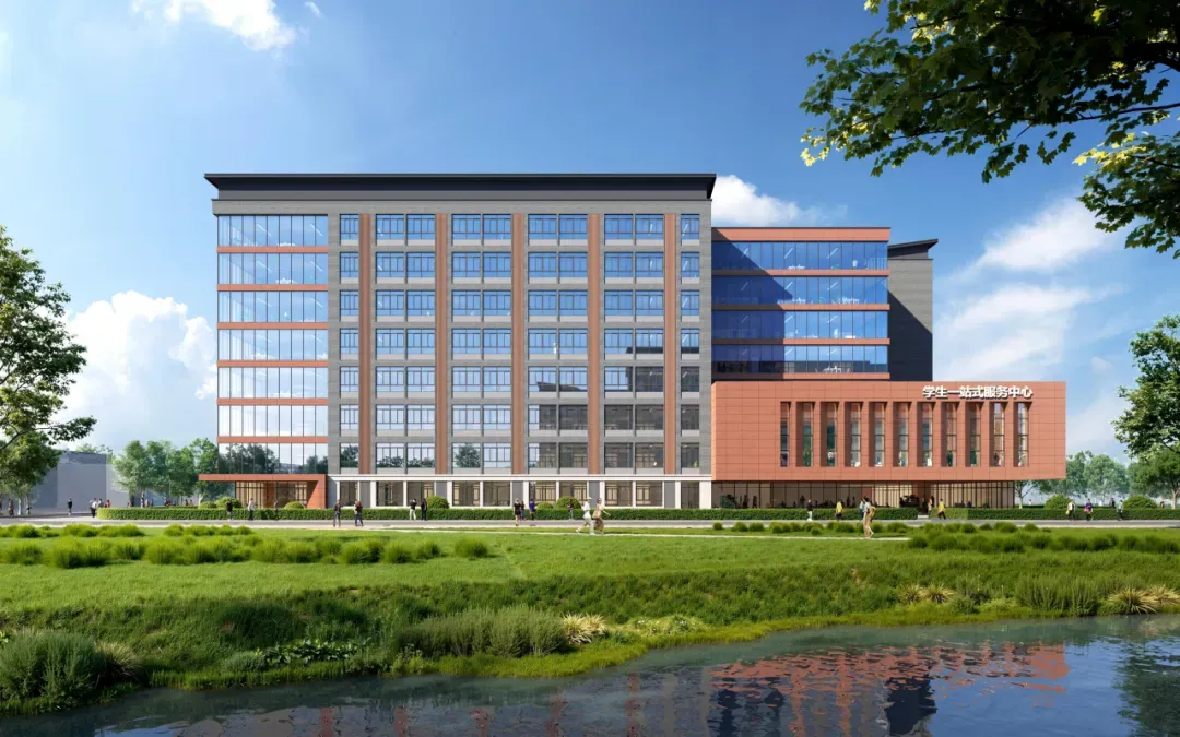 校区建设进展顺利,一期工程于2023年6月开工奠基,目前已完成主体建筑建设,总建筑面积约24-25万平方米,包含8栋宿舍楼、3栋教学楼、2栋食堂、行政楼、实训楼、展厅、图书馆等核心配套设施,眼下正处于内部装修、外墙粉刷阶段。