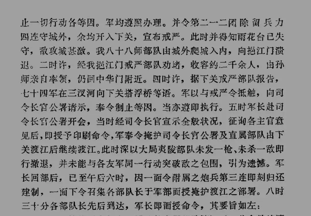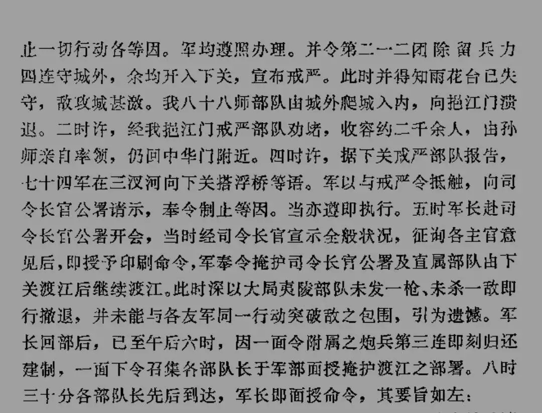 这确实也是唐生智的命令,但如前所述,唐生智等人搭的是私藏船只,并没有等来宋部船只,可见宋希濂同样也未完成掩护司令部人员的任务。
