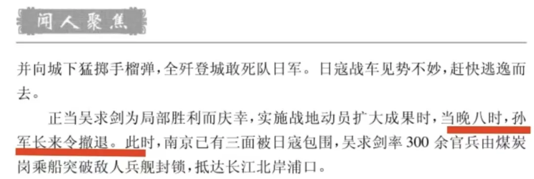 从吴的回忆来看,孙元良至少在12日晚9点时,仍掌握着部队,他在给城中部下下完撤退令后才开溜,这与葛天说的吴与孙在11日便失联完全不同。