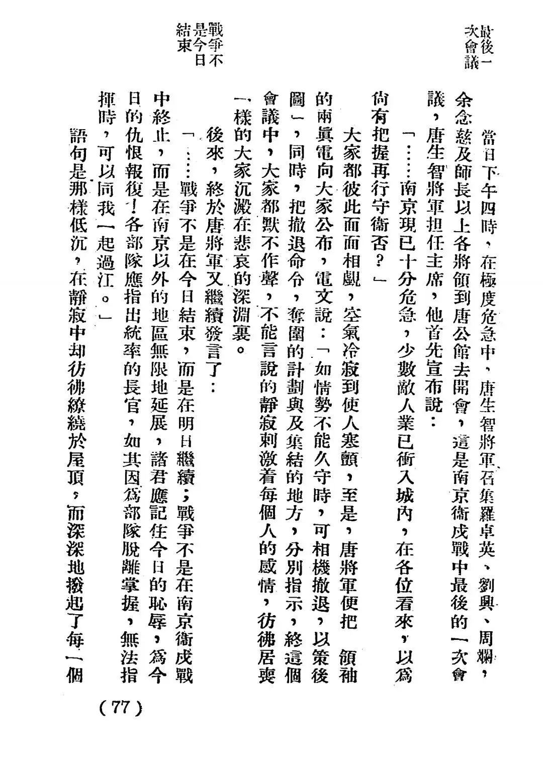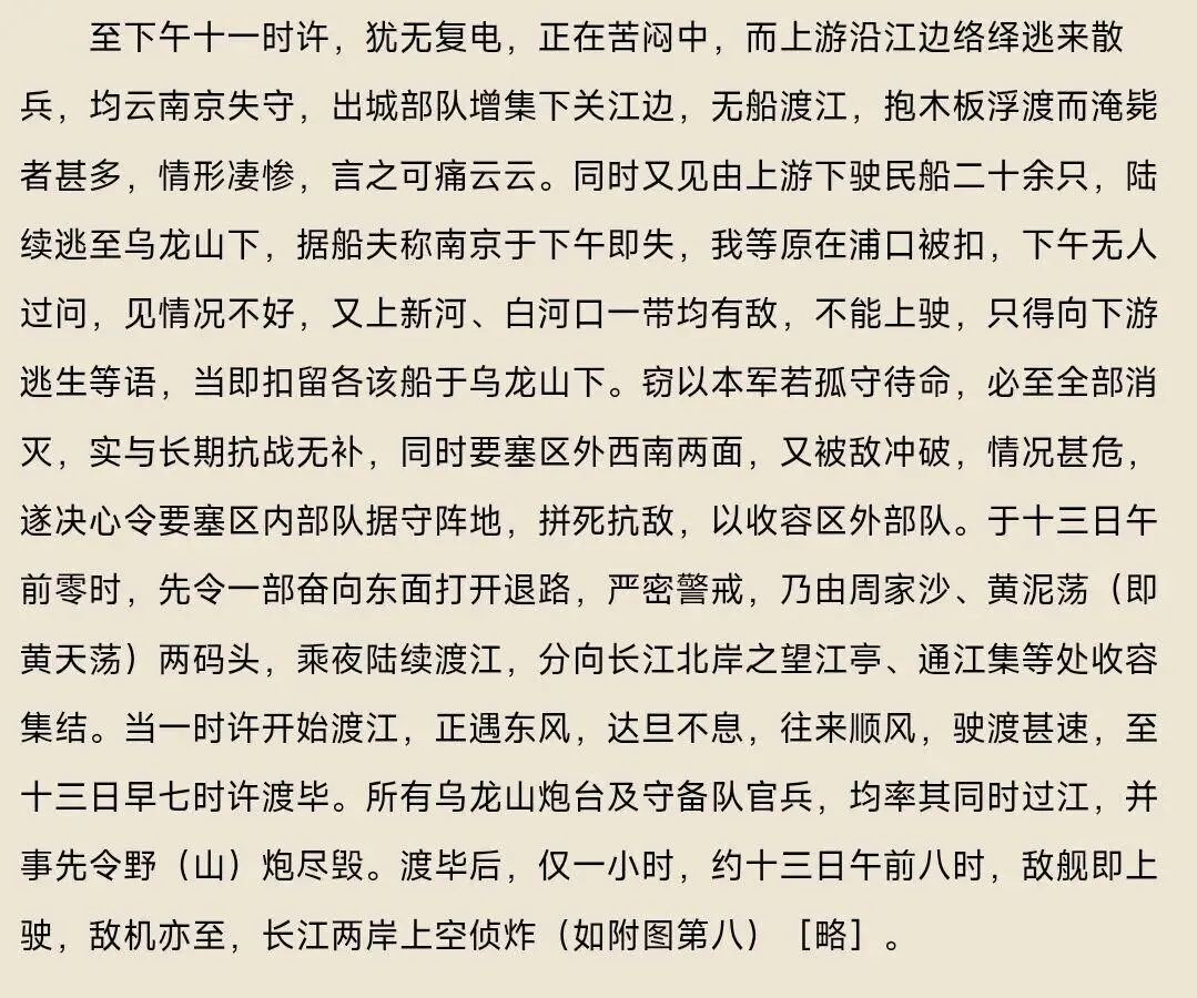 笔者强烈怀疑,俞济时、王敬久、沈发藻之所以敢只带一小部分部下直接过江,就是唐生智这表态给的底气,这三人过江时间与散会时间太接近了,区别是俞过江后尽力救江南的官兵过江,王沈二人直接跑了...