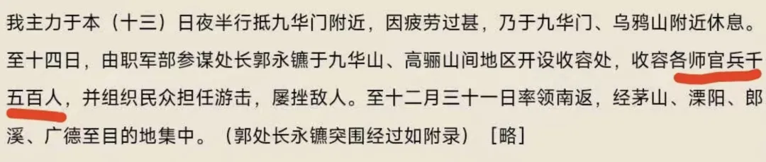 网上有一些人说粤军的突围很成功,这两个军确实整出不了不小的动静,一部分官兵甚至冲到了南京大屠杀元凶朝香宫鸠的司令部附近,击毙十几名司令部卫兵,但这两个军的收容情况并不好,据《陆军第六十六军战斗详报》,66军收容到官兵1500余人: