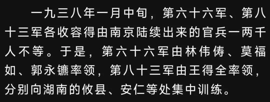 83军方面,据刘绍武回忆:一九三八年一月中旬,第六十六军、第八十三军各收容得由南京陆续出来的官兵一两千人不等: