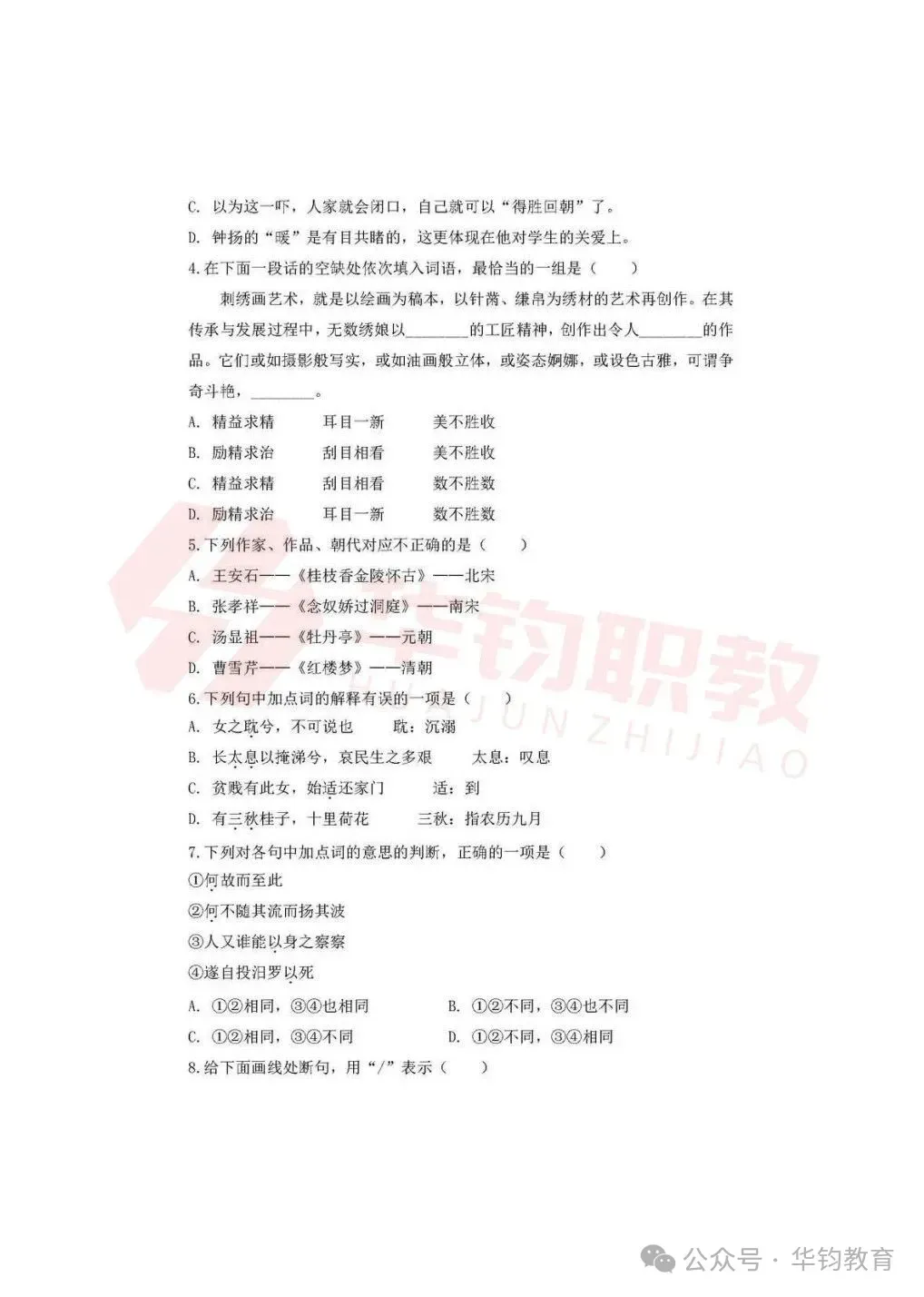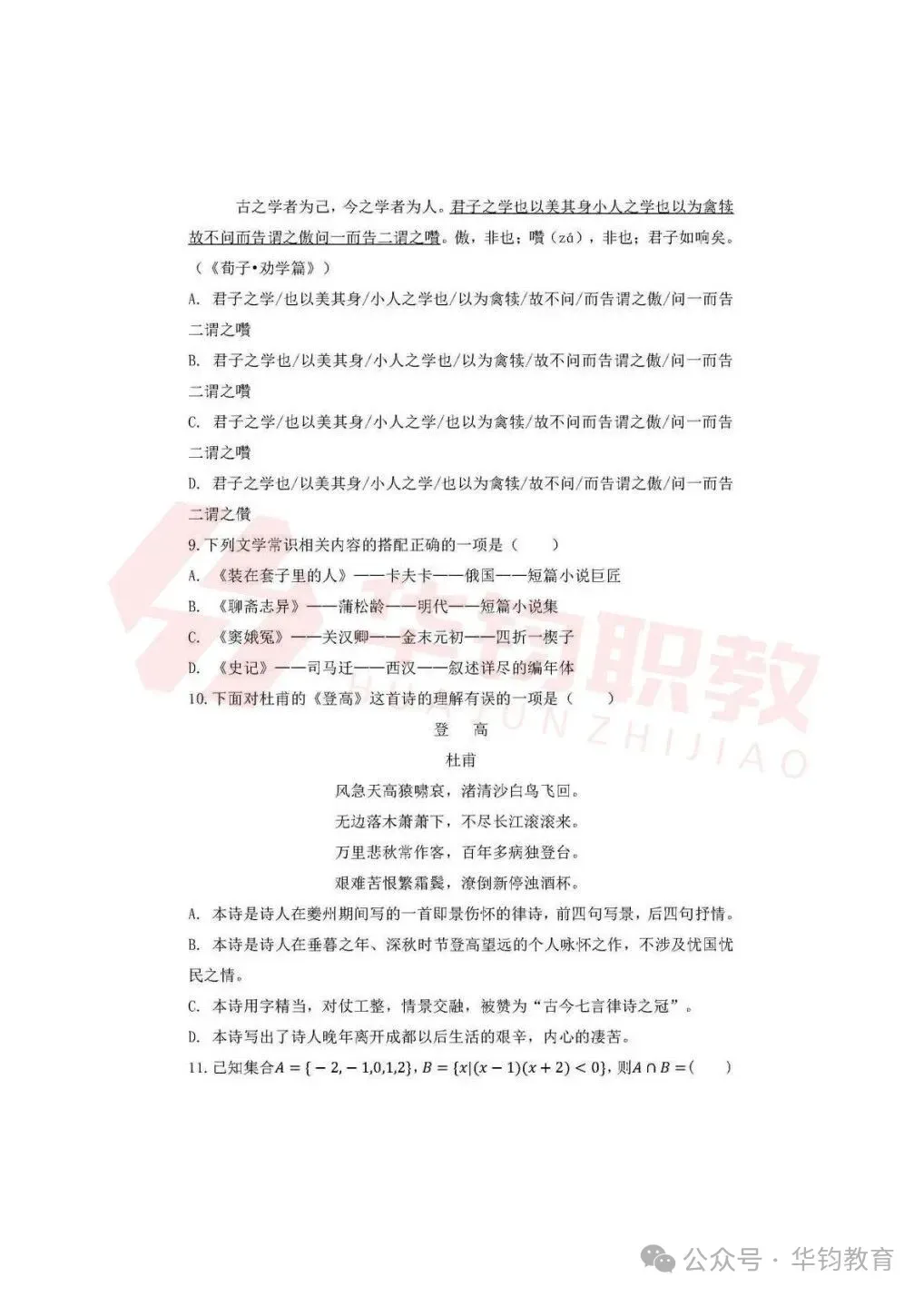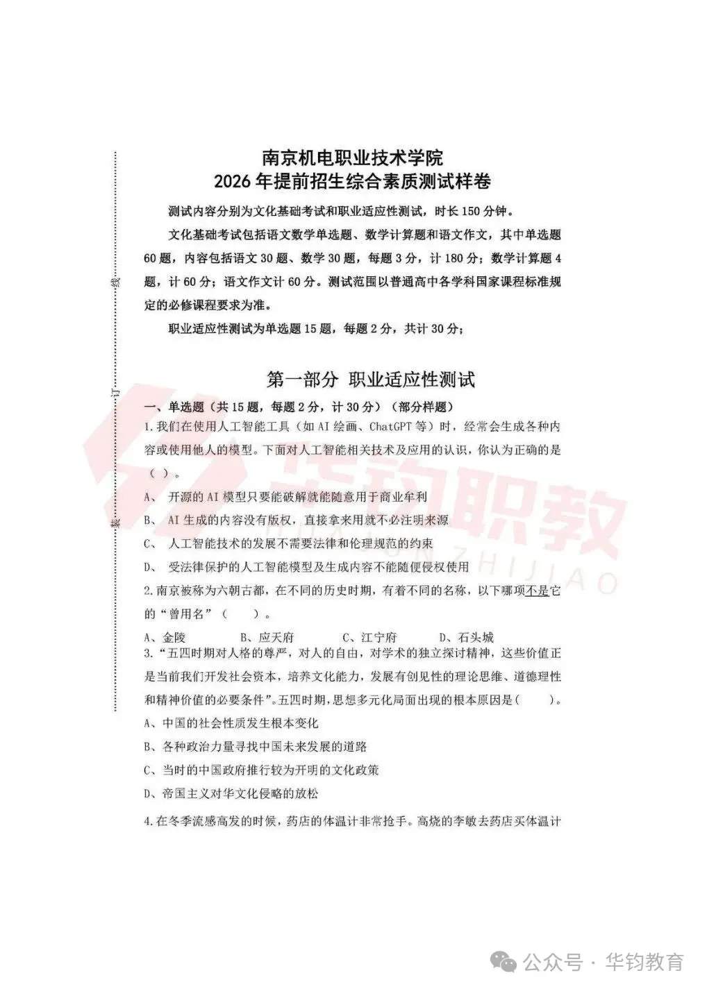 >江苏高职单招|南京机电职业技术学院2026年提前招生测试样卷