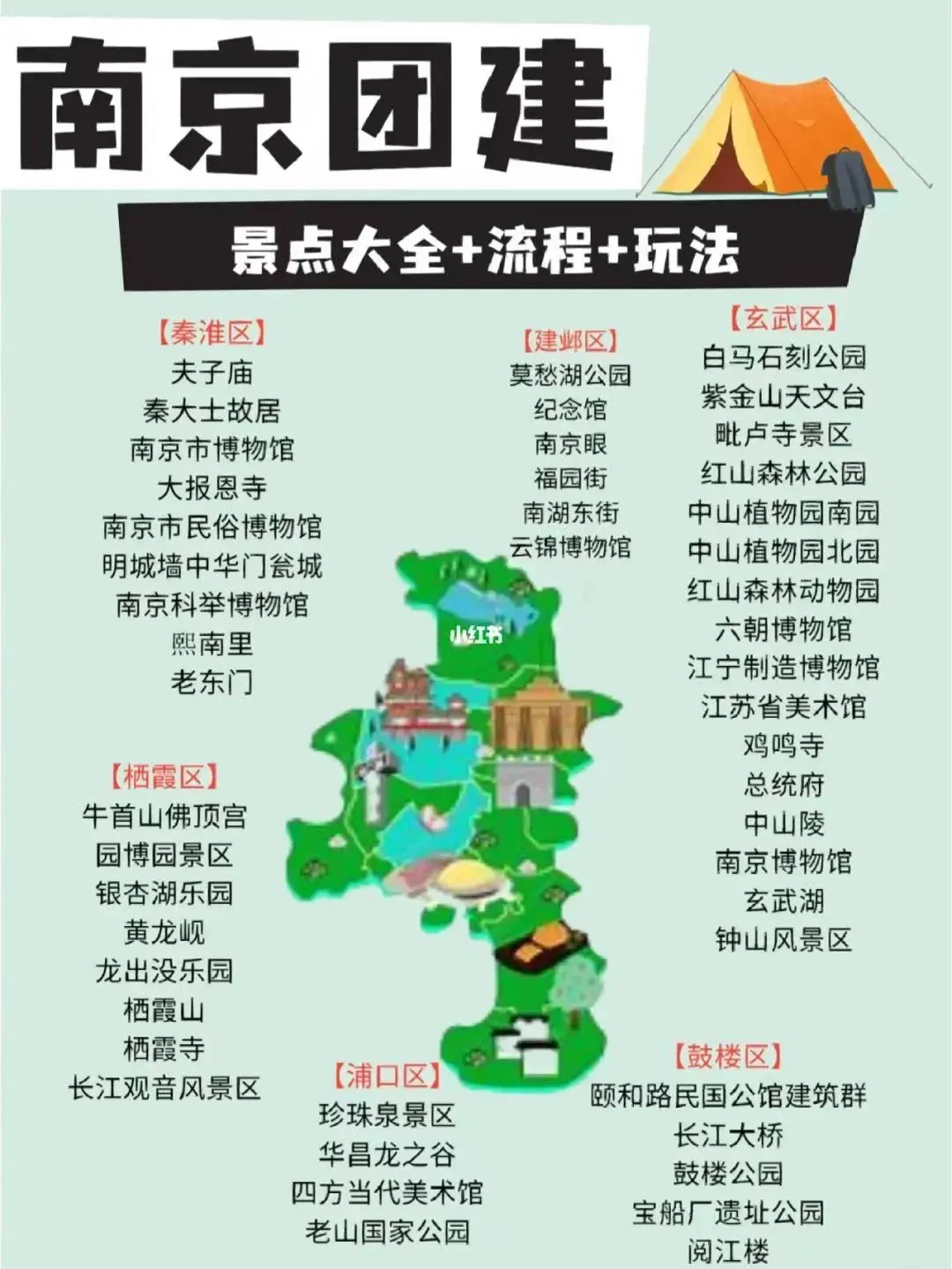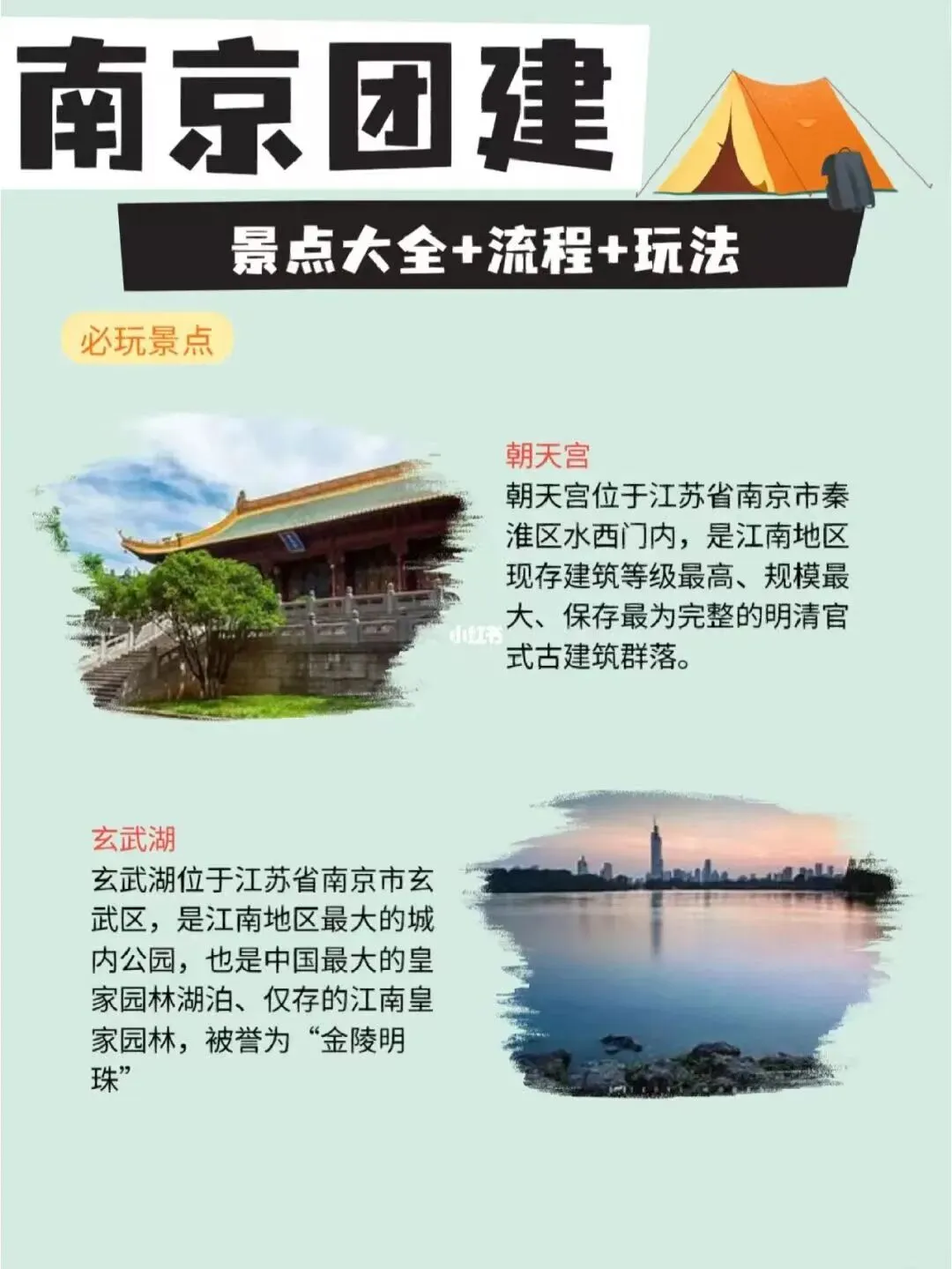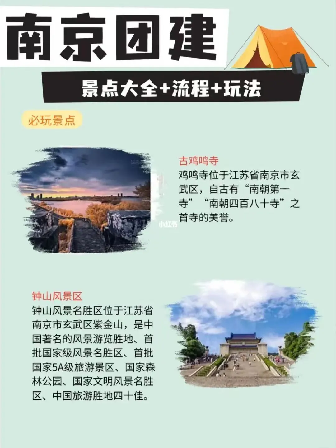 为了想团建的姐妹不在迷茫😳小编熬夜整理了南京的景点大全👏🏻流程、玩法全都有👍🏻团建看这篇就够了😘-DAY1✨10:00装备出发10:30签到11:00破冰小游戏12:30午餐14:30打水仗15:00解压小游戏16:00狼人sha19:30户外烧烤20:00星空露营——DAY2✨09:00起床 早餐10:00互动小游戏12:00美味午餐13:00准备回家-